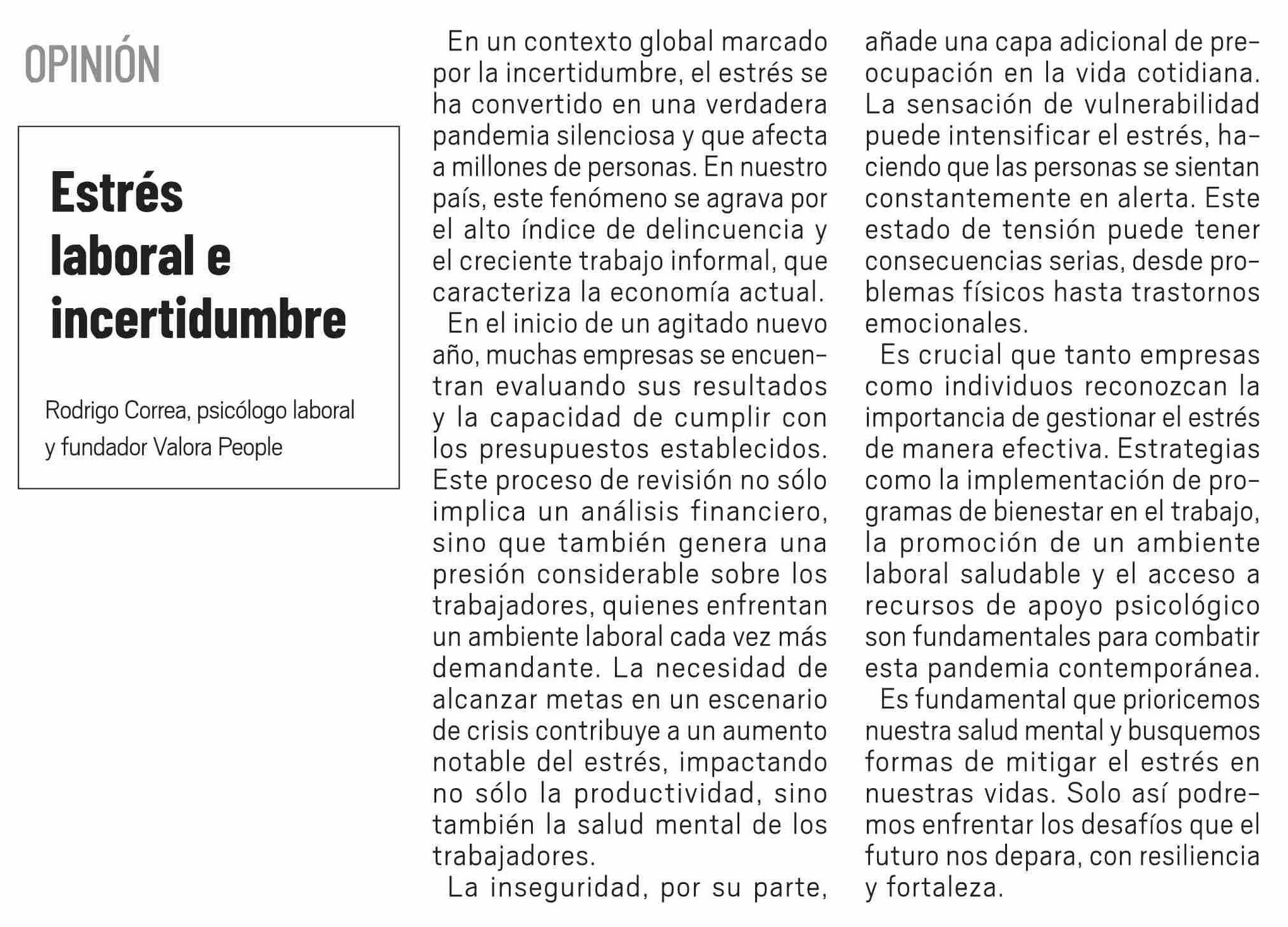 Columnas de Opinión: Estrés laboral e incertidumbre 12-01-2026 El Día |