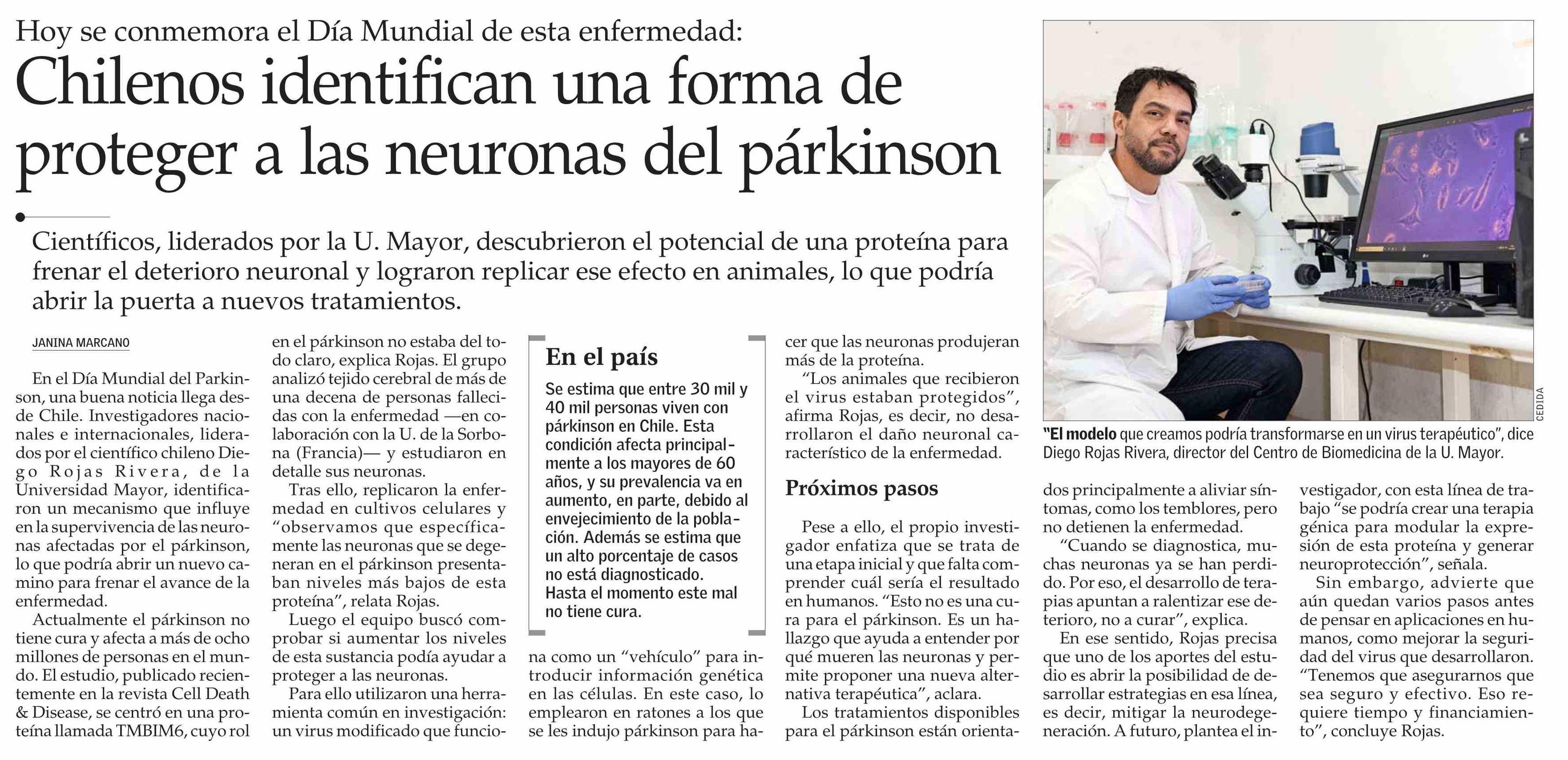 Título: Chilenos identifican una forma de proteger a las neuronas del párkinson