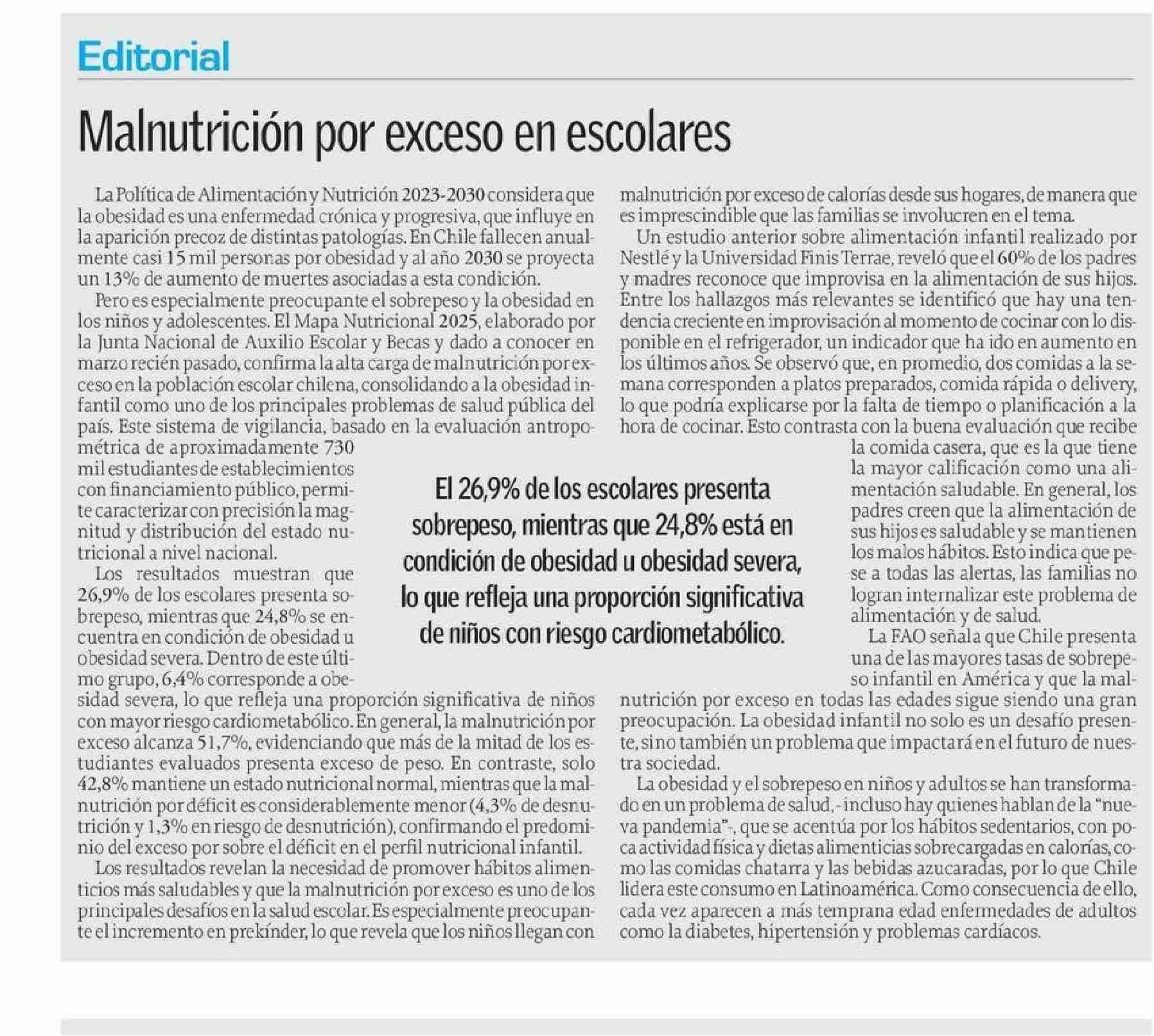 Título: EDITORIAL: Malnutrición por exceso en escolares