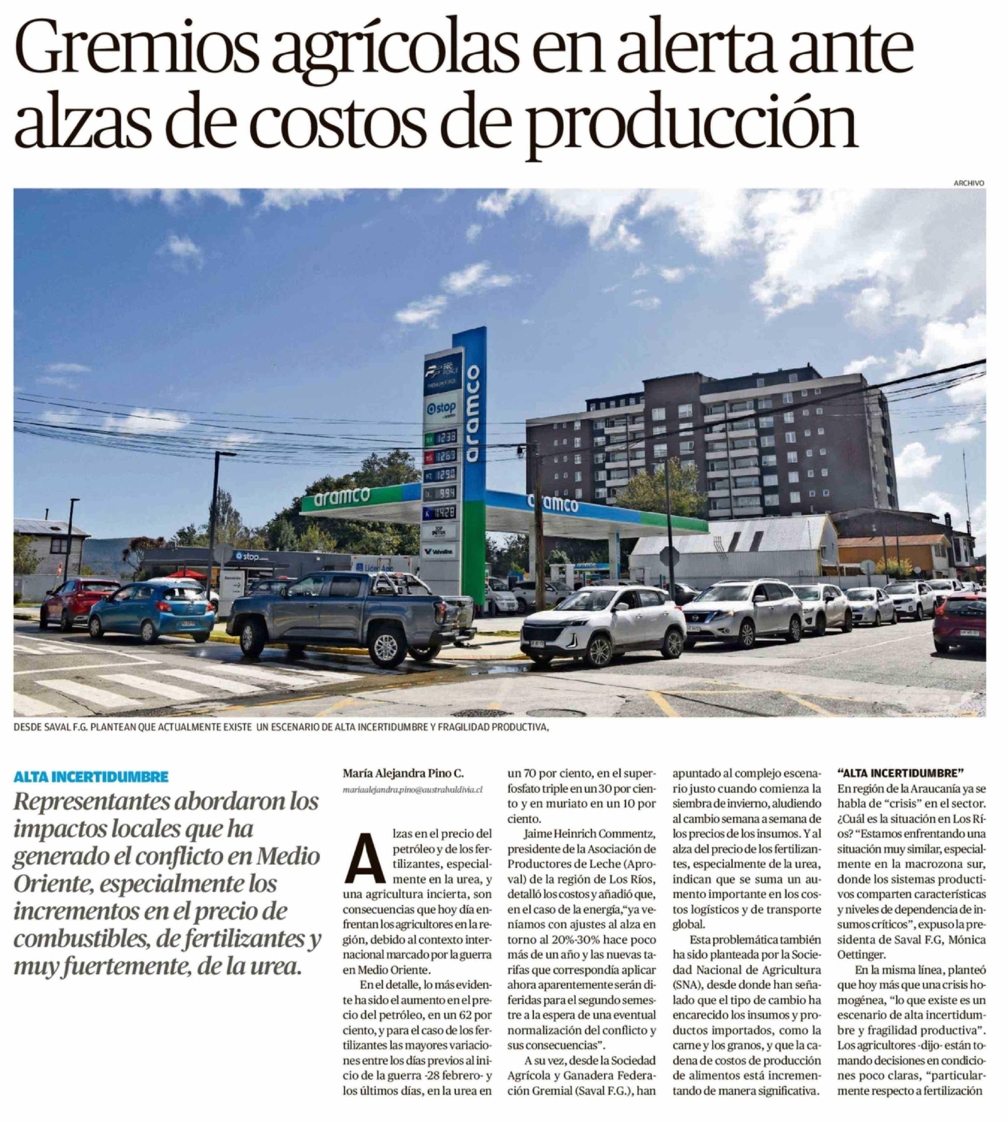 Título: Gremios agrícolas en alerta ante alzas de costos de producción