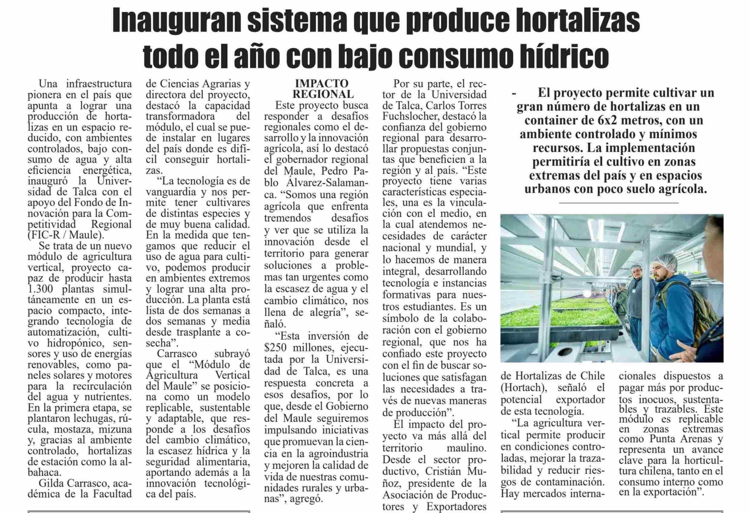 | Fecha: | 10-05-2025 | Sector: | Noticia general | Región: | Región del Maule |
