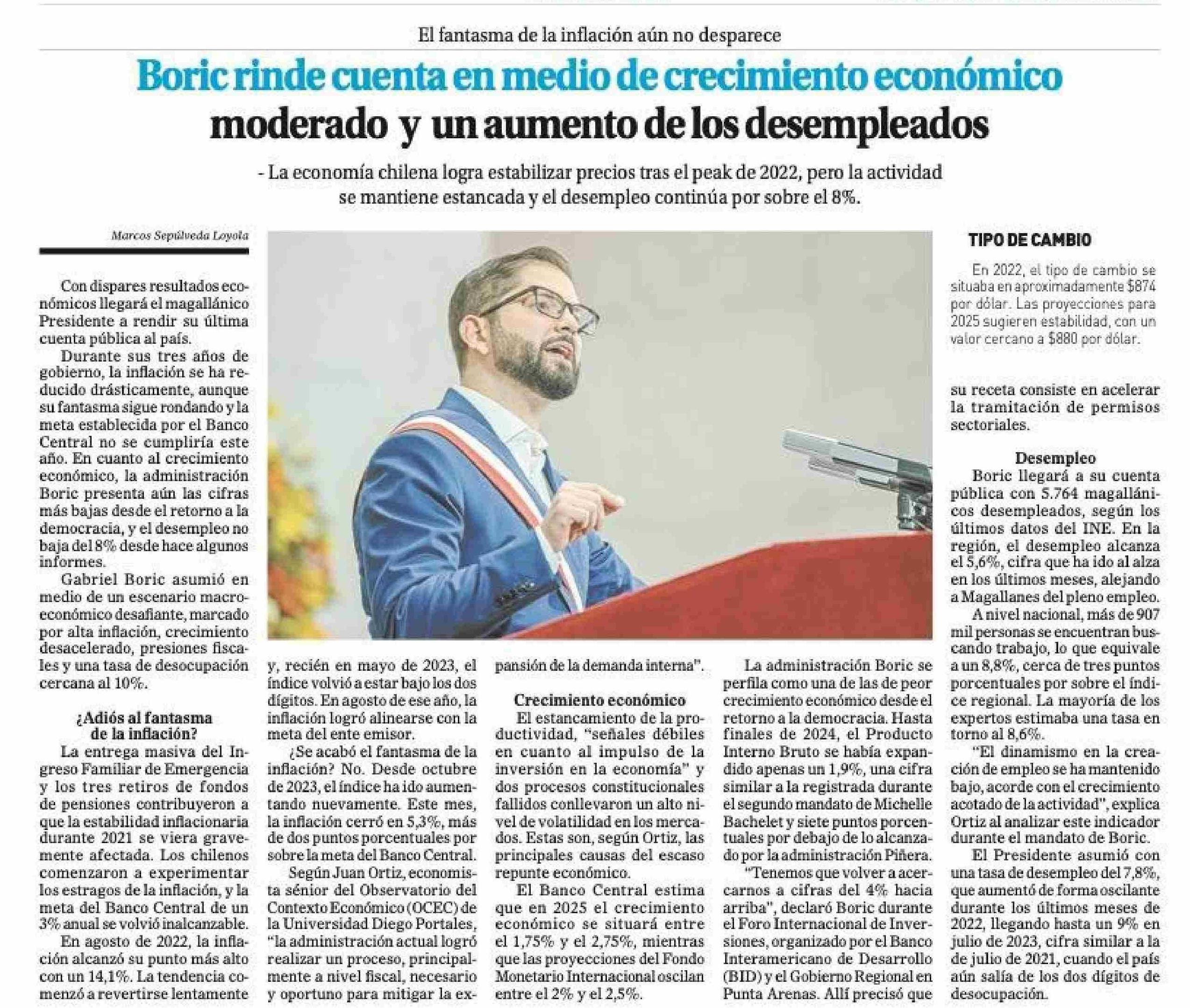 Boric rinde cuenta en medio de crecimiento económico moderado y un aumento de los desempleados 01-06-2025 El Magallanes |
