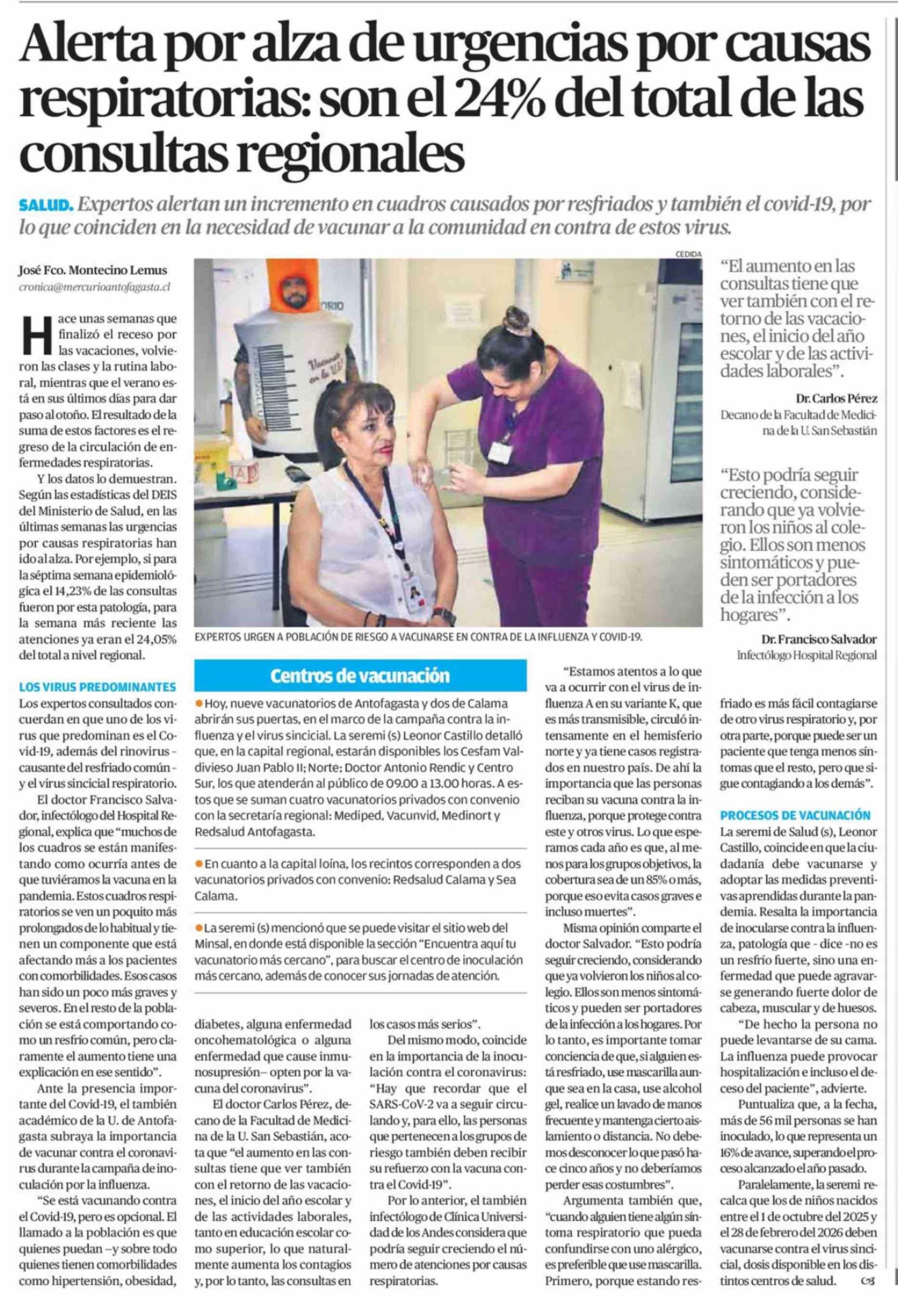 Alerta por alza de urgencias por causas respiratorias: son el 24% del total de las consultas regionales 21-03-2026 El Mercurio de Calama |