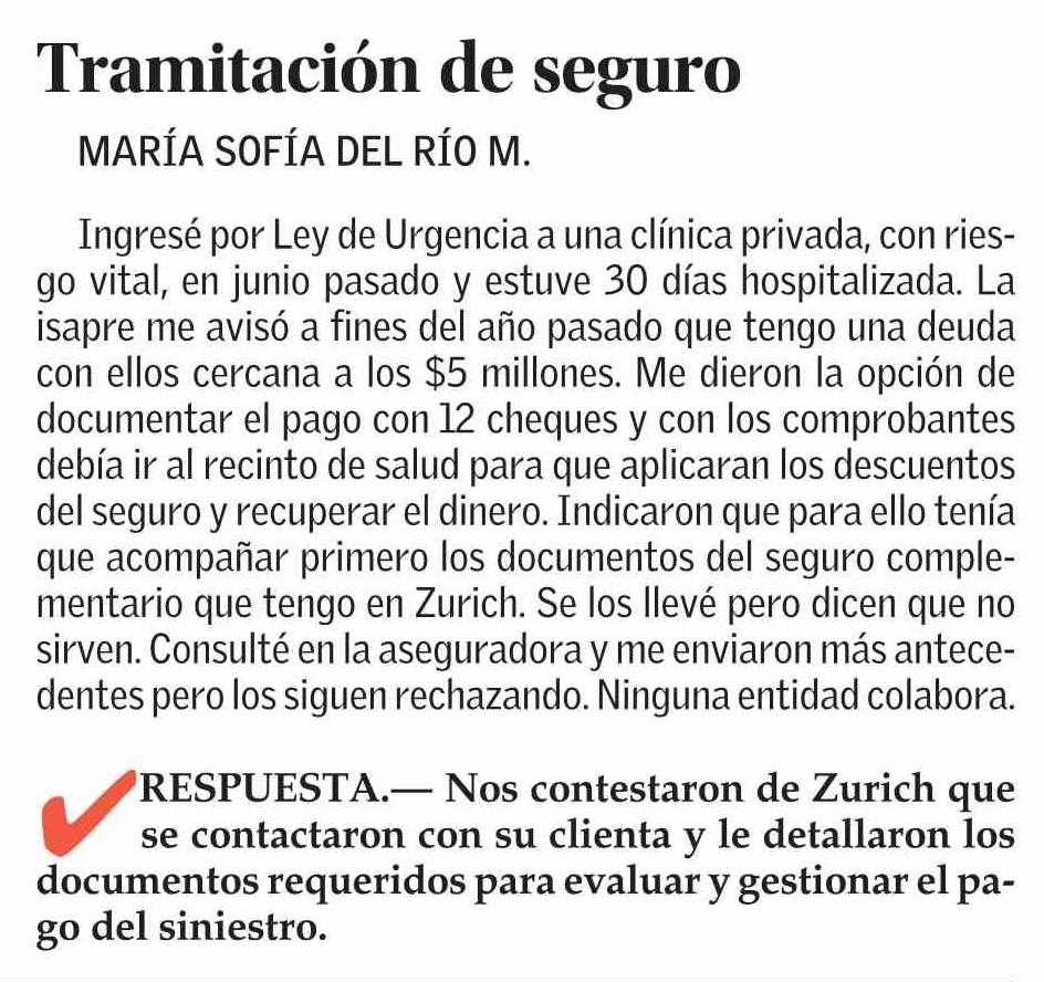 Título: Tramitación de seguro