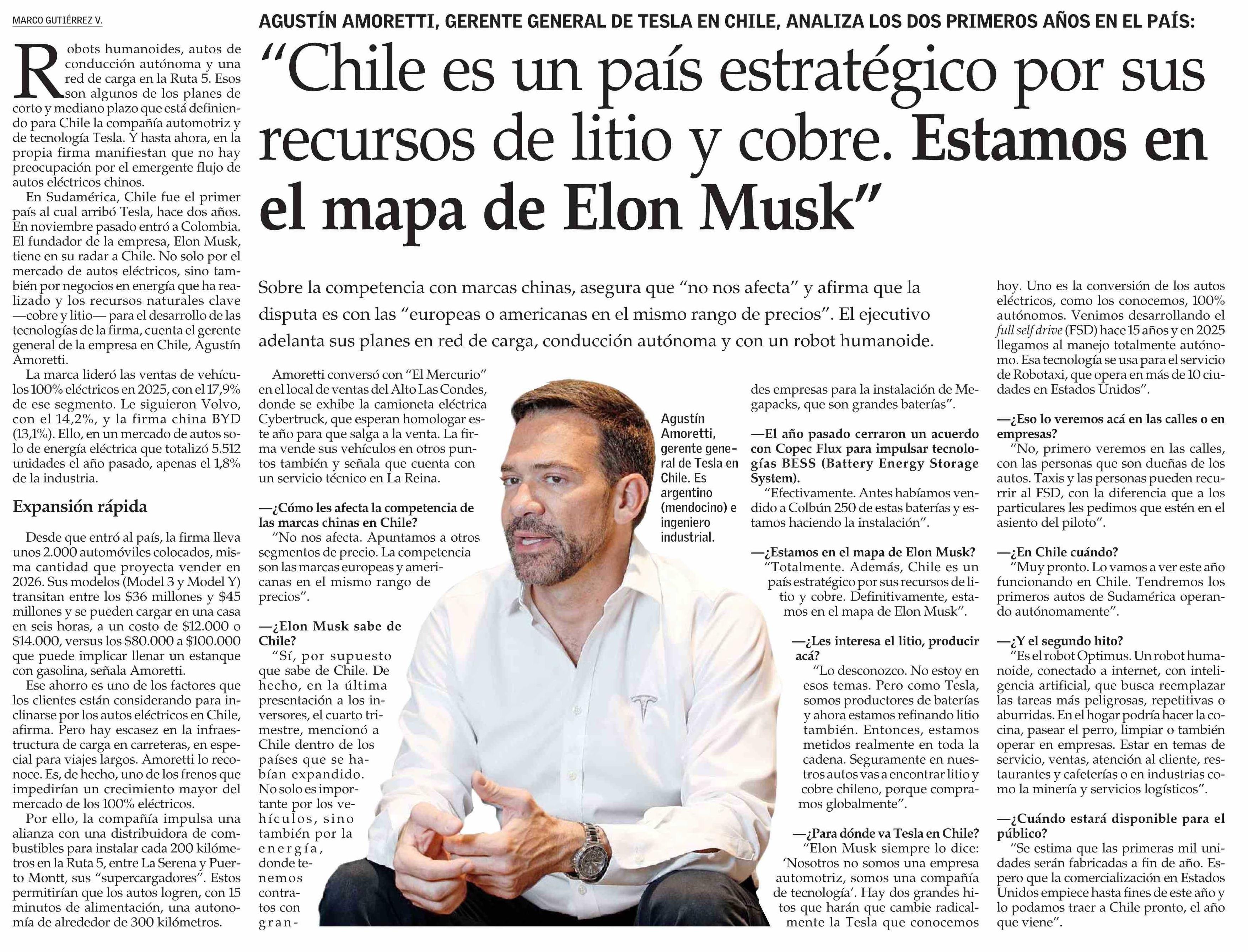 Título: “Chile es un país estratégico por sus recursos de litio y cobre. Estamos en el mapa de Elon Musk”