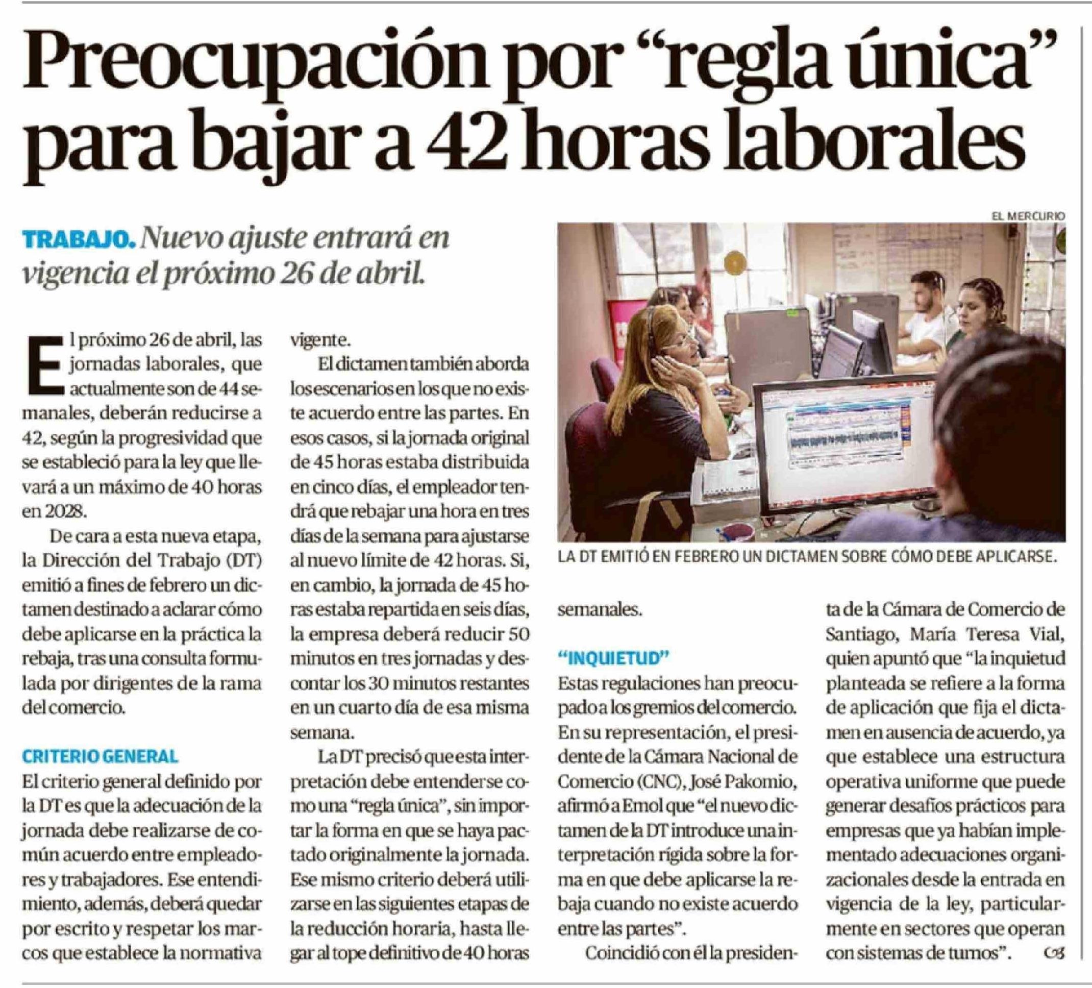 | Título: | Preocupación por "regla única" para bajar a 42 horas laborales |