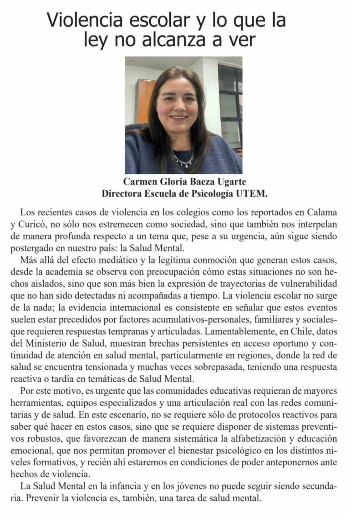 | Título: | Columnas de Opinión: Violencia escolar y lo que la ley no alcanza a ver |