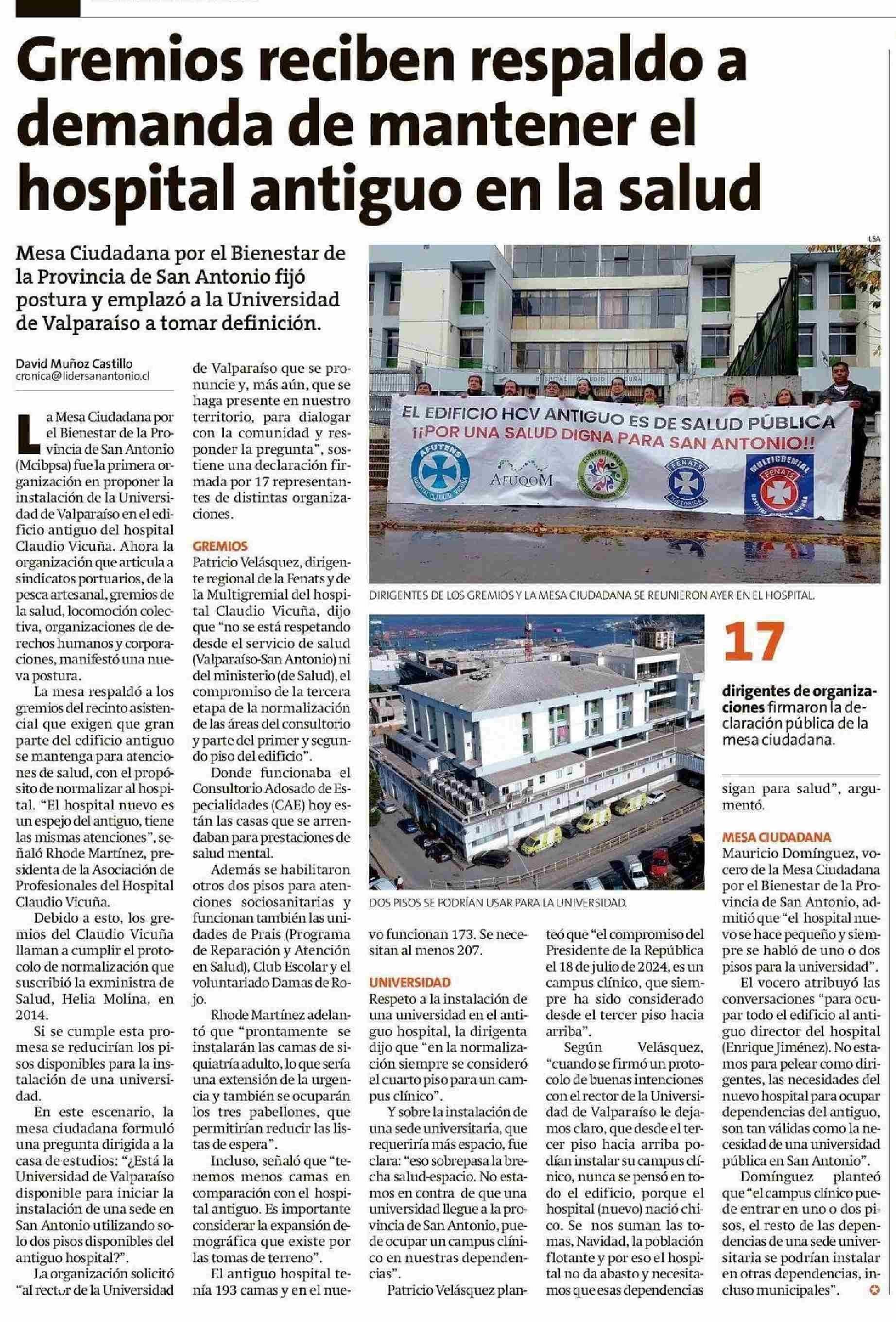 Gremios reciben respaldo a demanda de mantener el hospital antiguo en la salud 27-05-2025 El Líder |