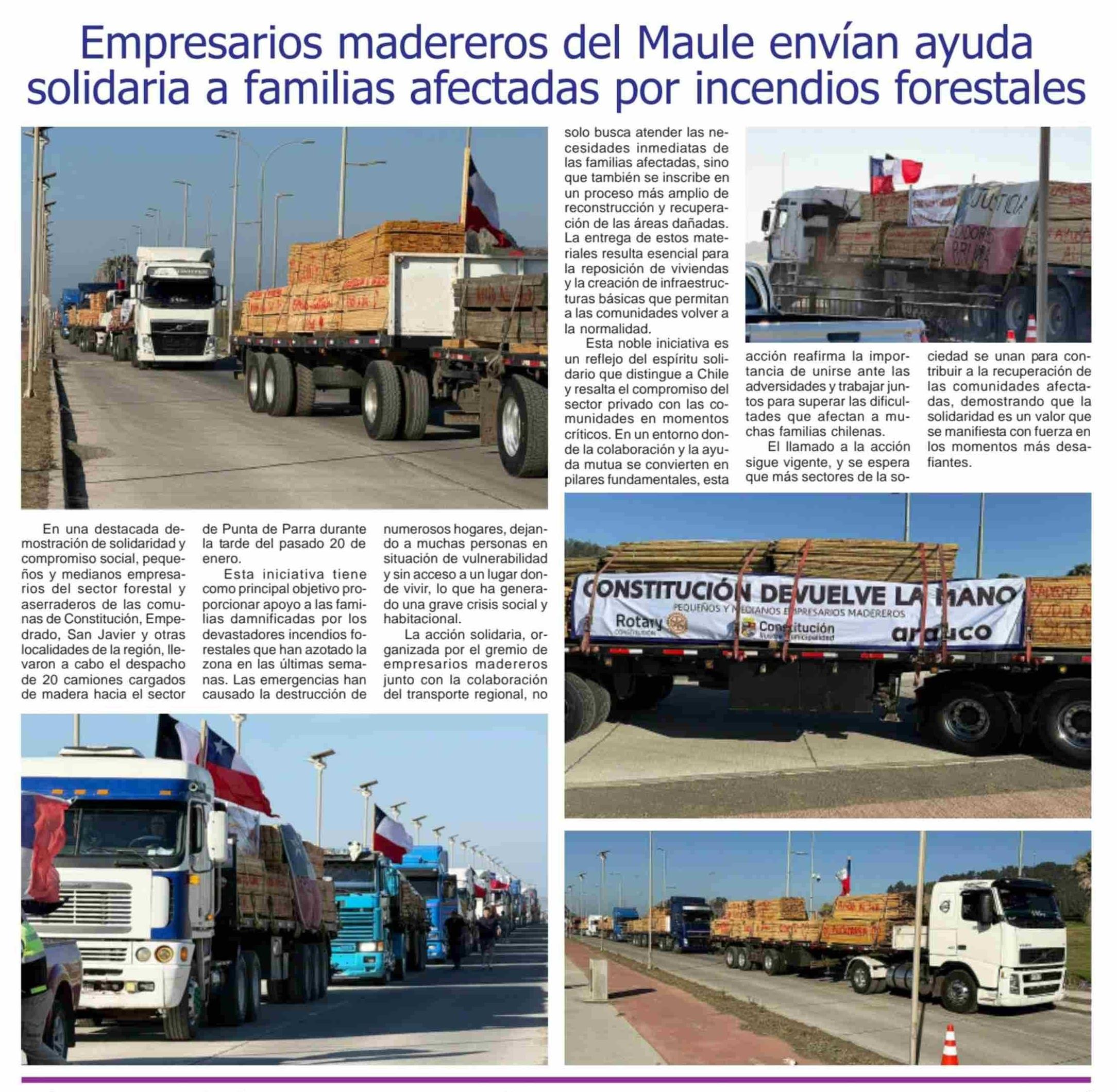 Empresarios madereros del Maule envían ayuda solidaria a familias afectadas por incendios forestales 24-01-2026 Maule Hoy |