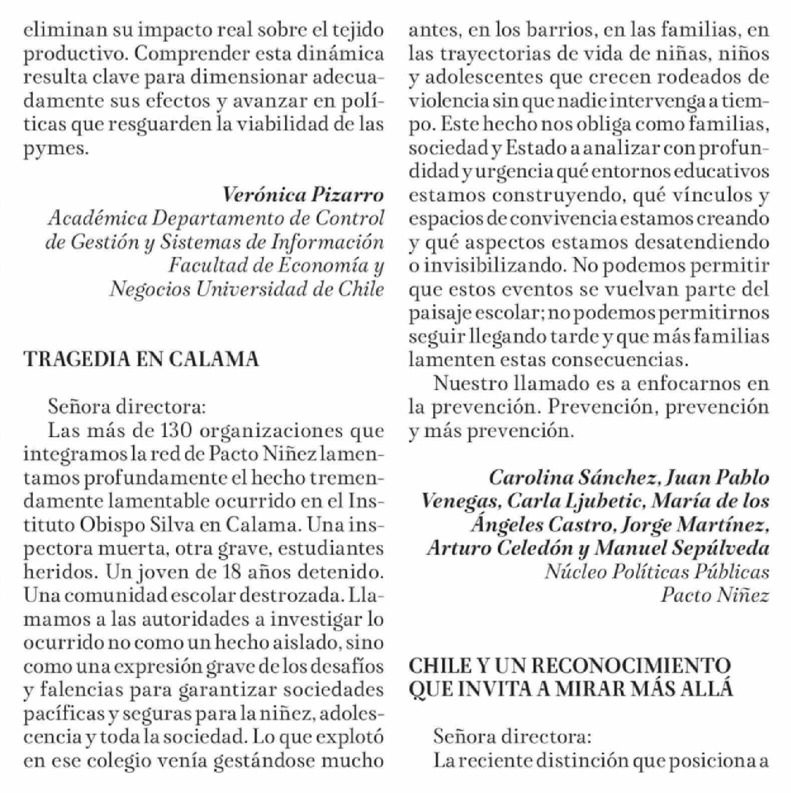Cartas: TRAGEDIA EN CALAMA 01-04-2026 La Tribuna |