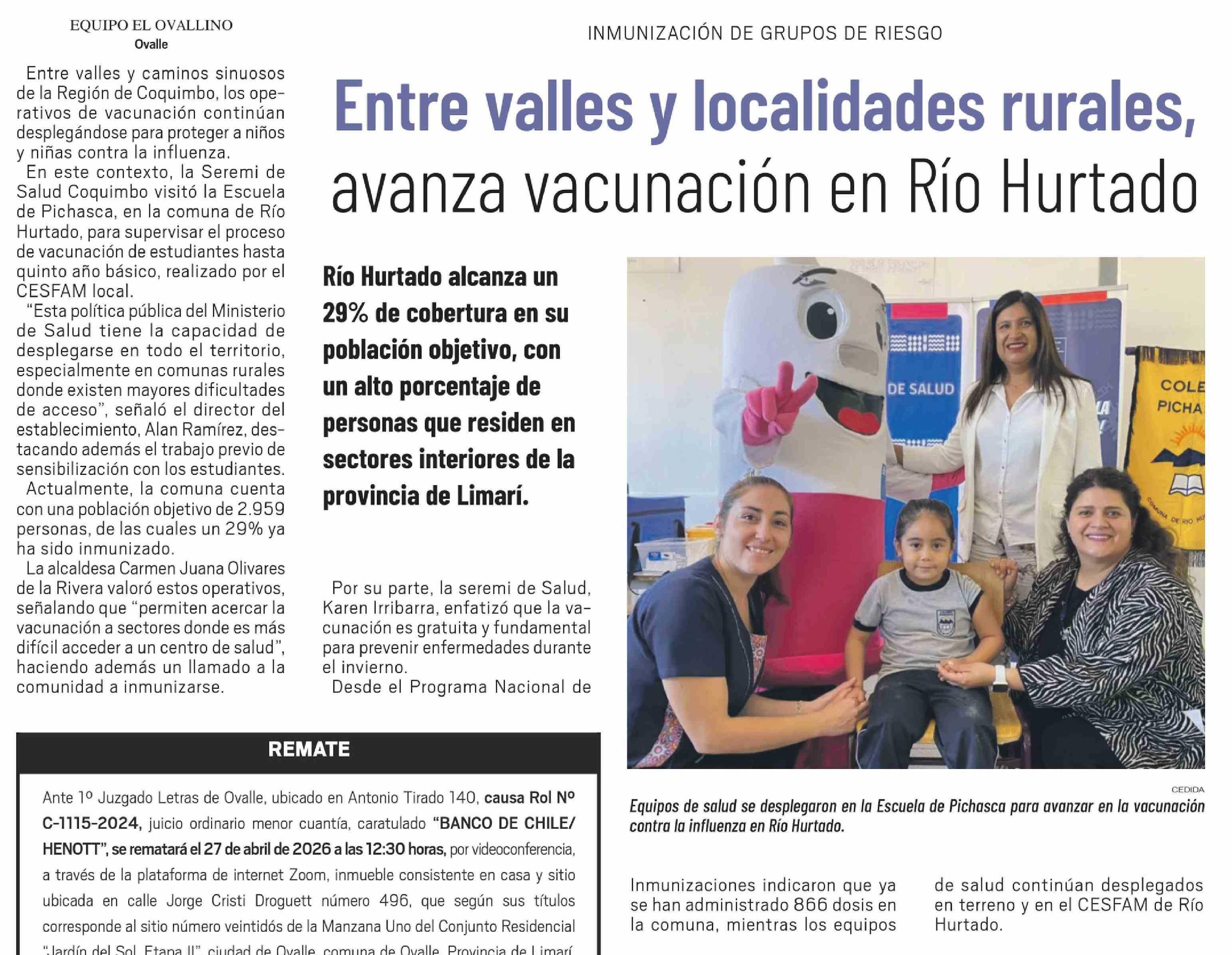 Entre valles y localidades rurales, avanza vacunación en Río Hurtado 05-04-2026 El Ovallino |