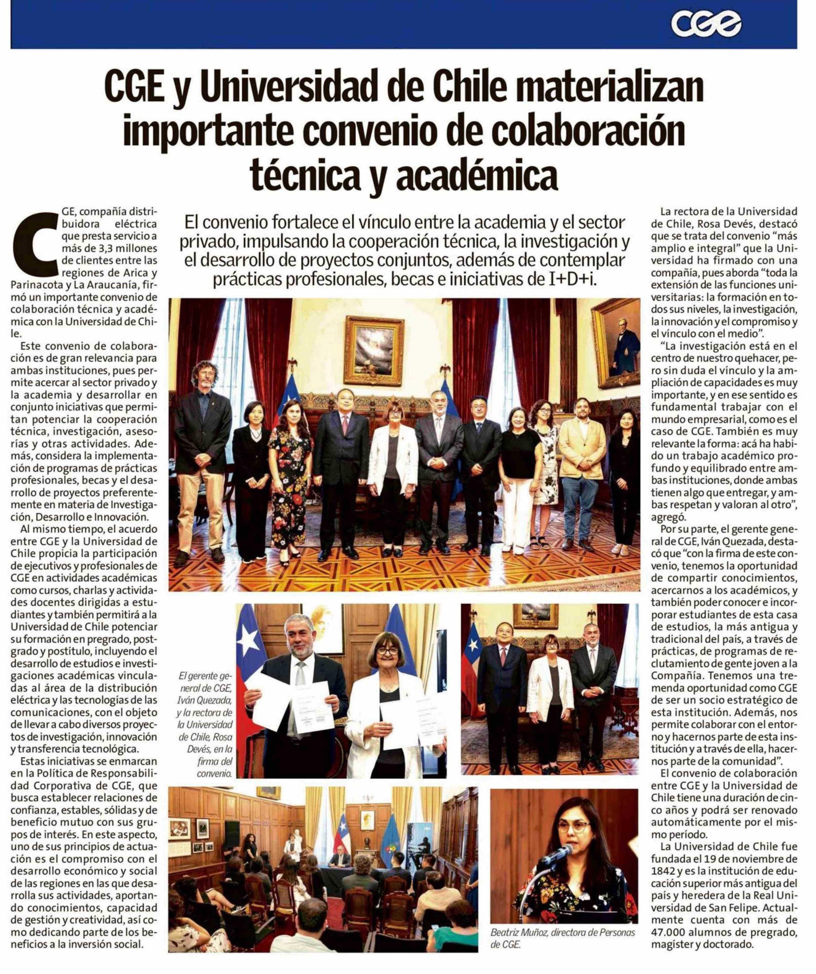 | Título: | CGE y Universidad de Chile materializan importante convenio de colaboración técnica y académica |