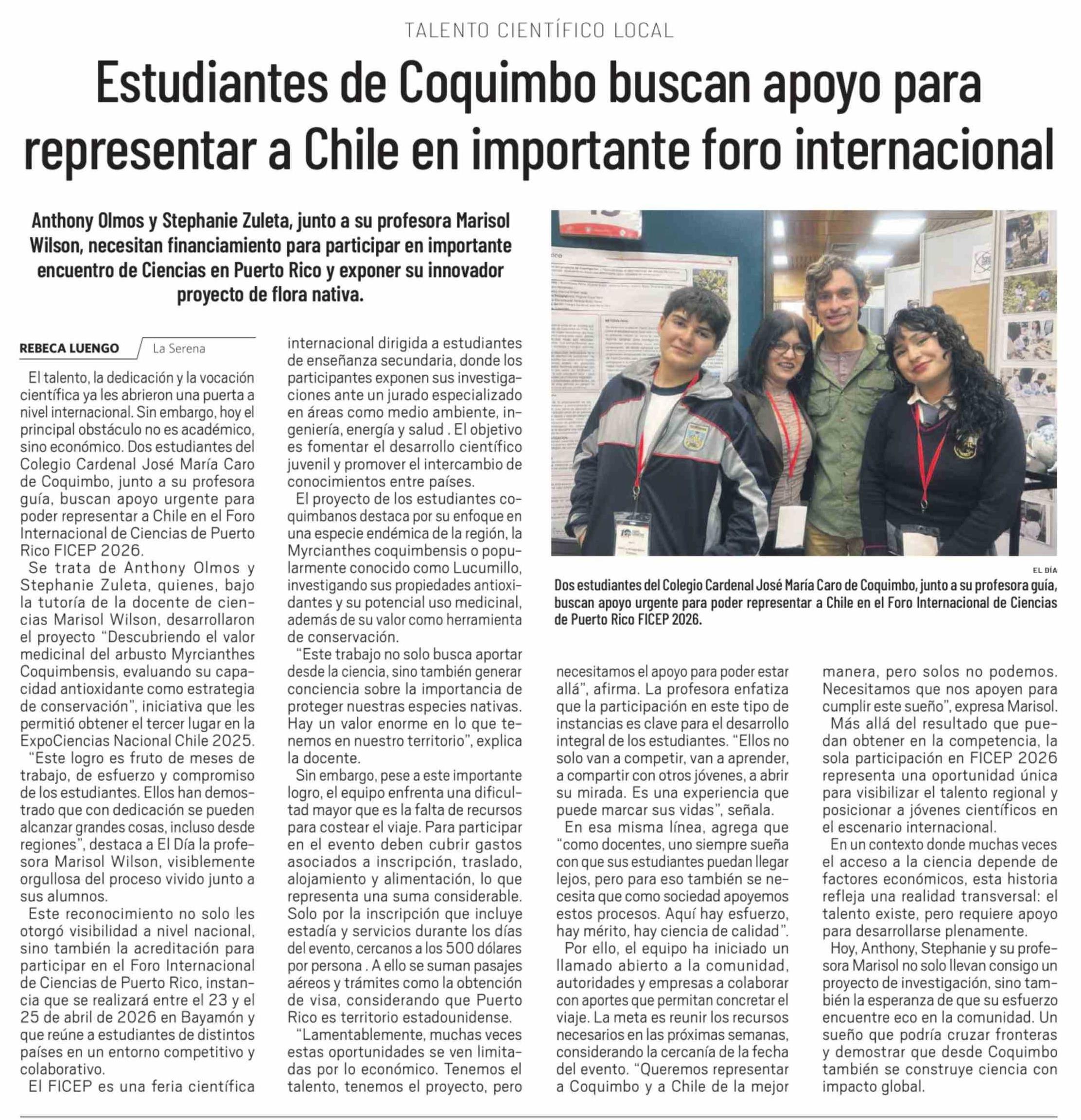 Estudiantes de Coquimbo buscan apoyo para representar a Chile en importante foro internacional 29-03-2026 El Día |