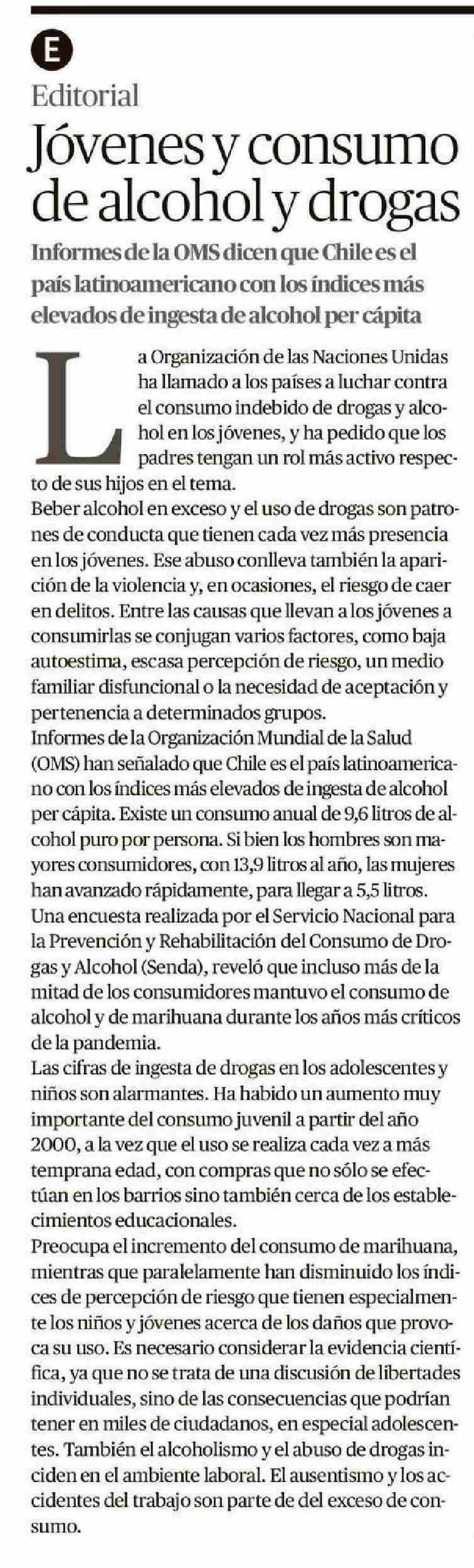 Editorial: Jóvenes y consumo de alcohol y drogas