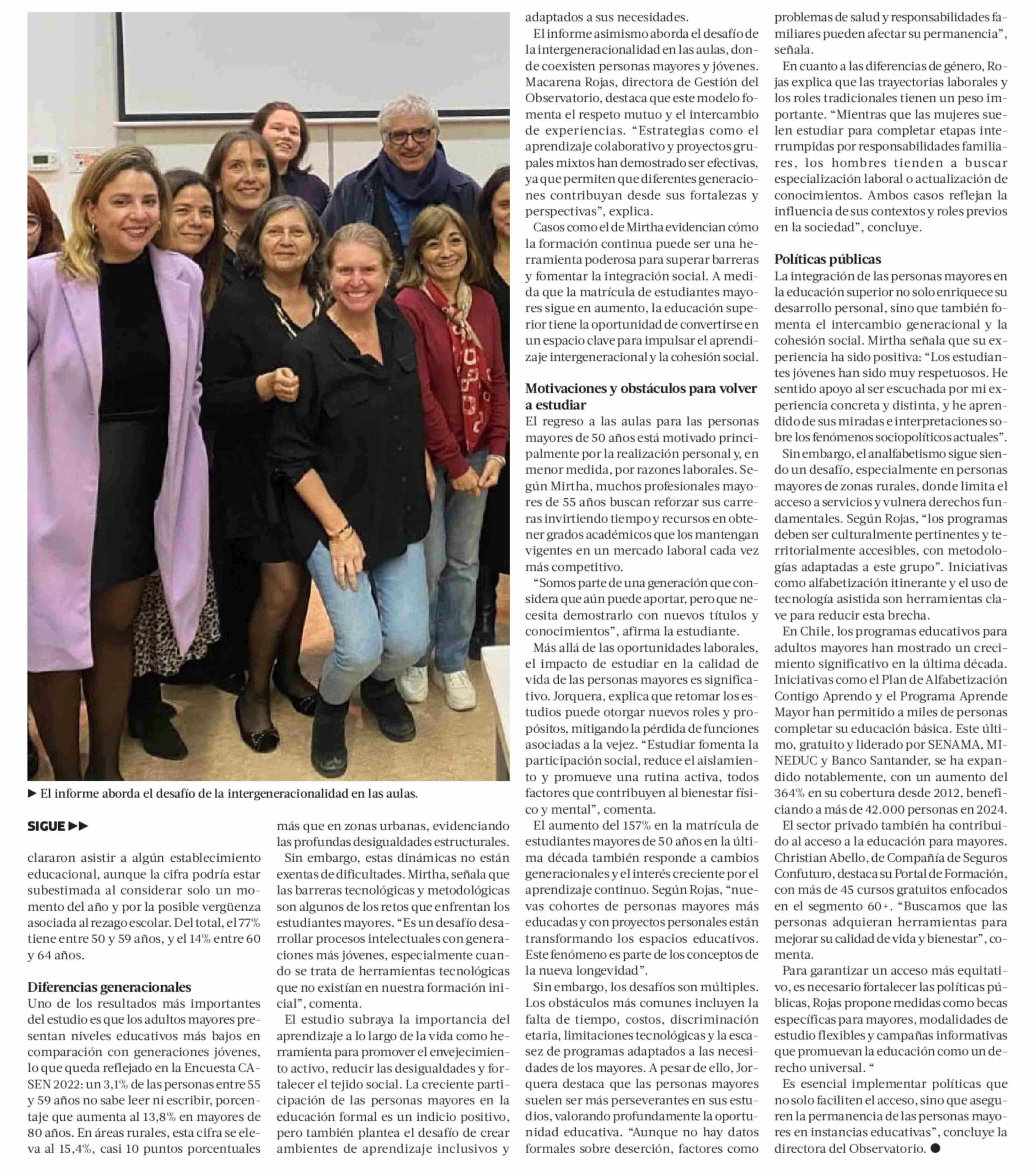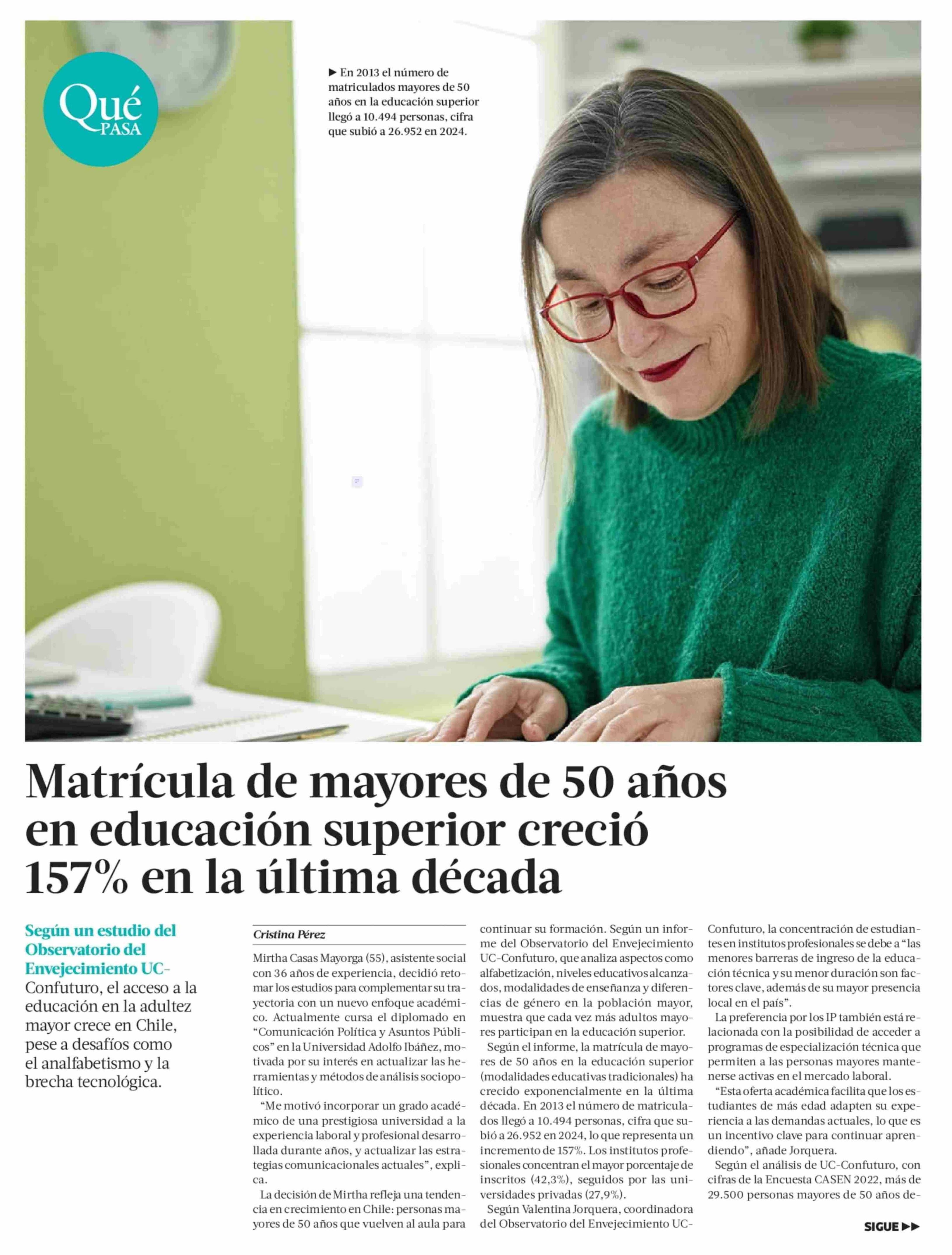 Matrícula de mayores de 50 años en educación superior creció 157% en la última década 24-01-2025 La Tercera |
