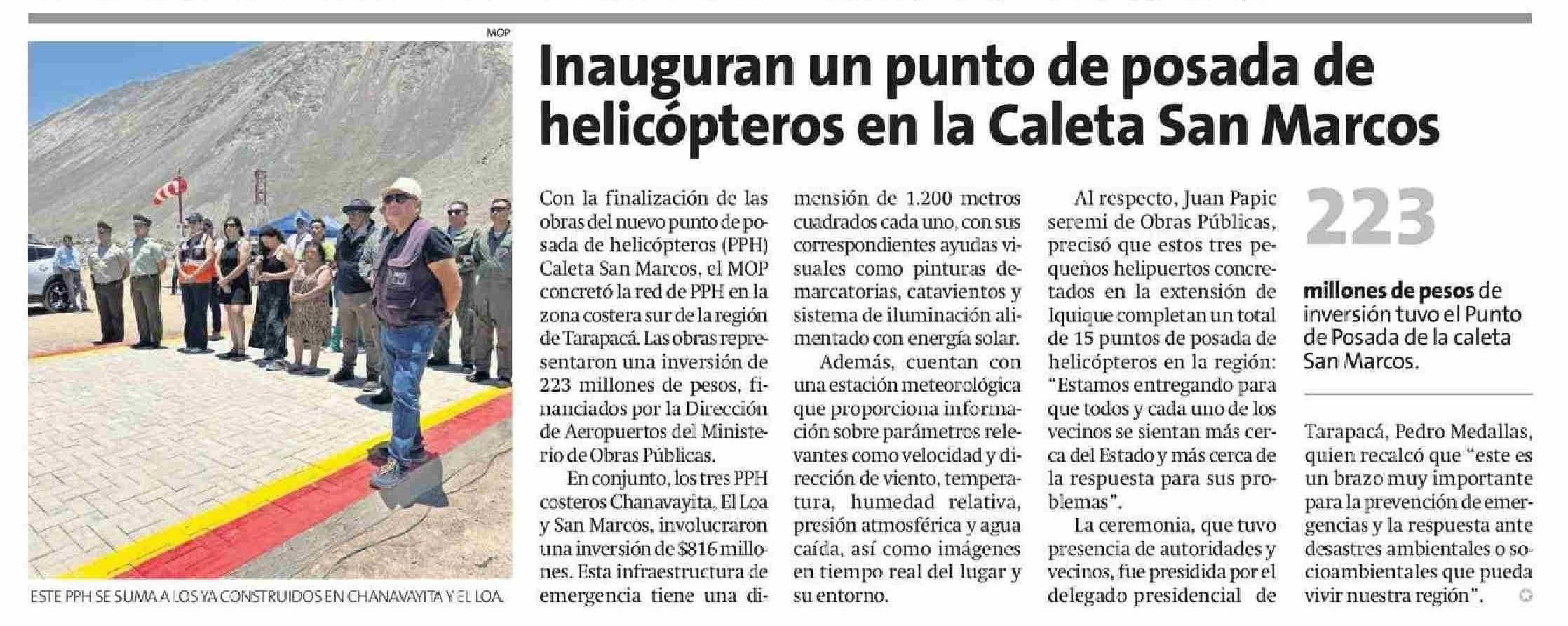 Título: Inauguran un punto de posada de helicópteros en la Caleta San Marcos