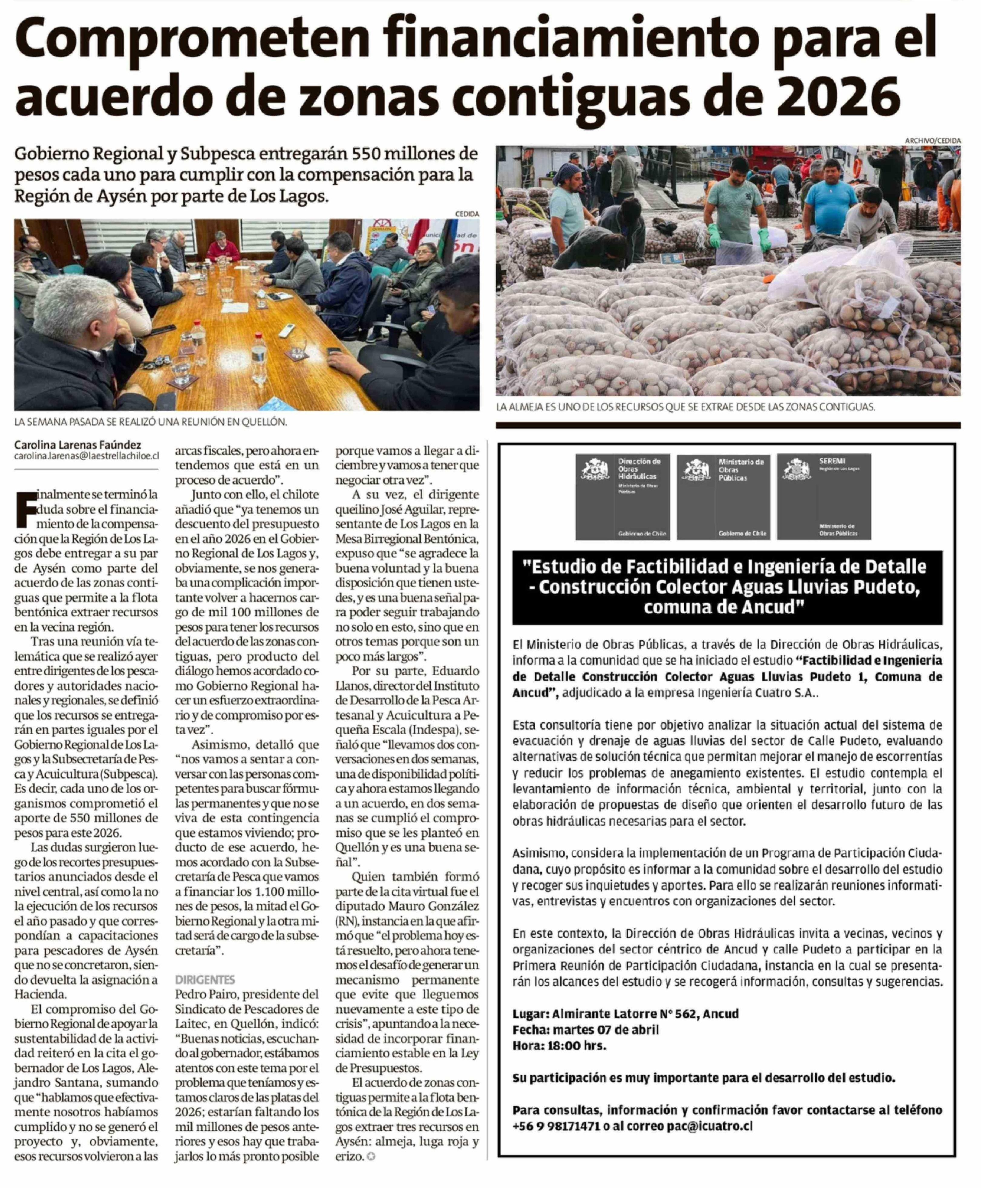 Comprometen financiamiento para el acuerdo de zonas contiguas de 2026 03-04-2026 La Estrella de Chiloé |