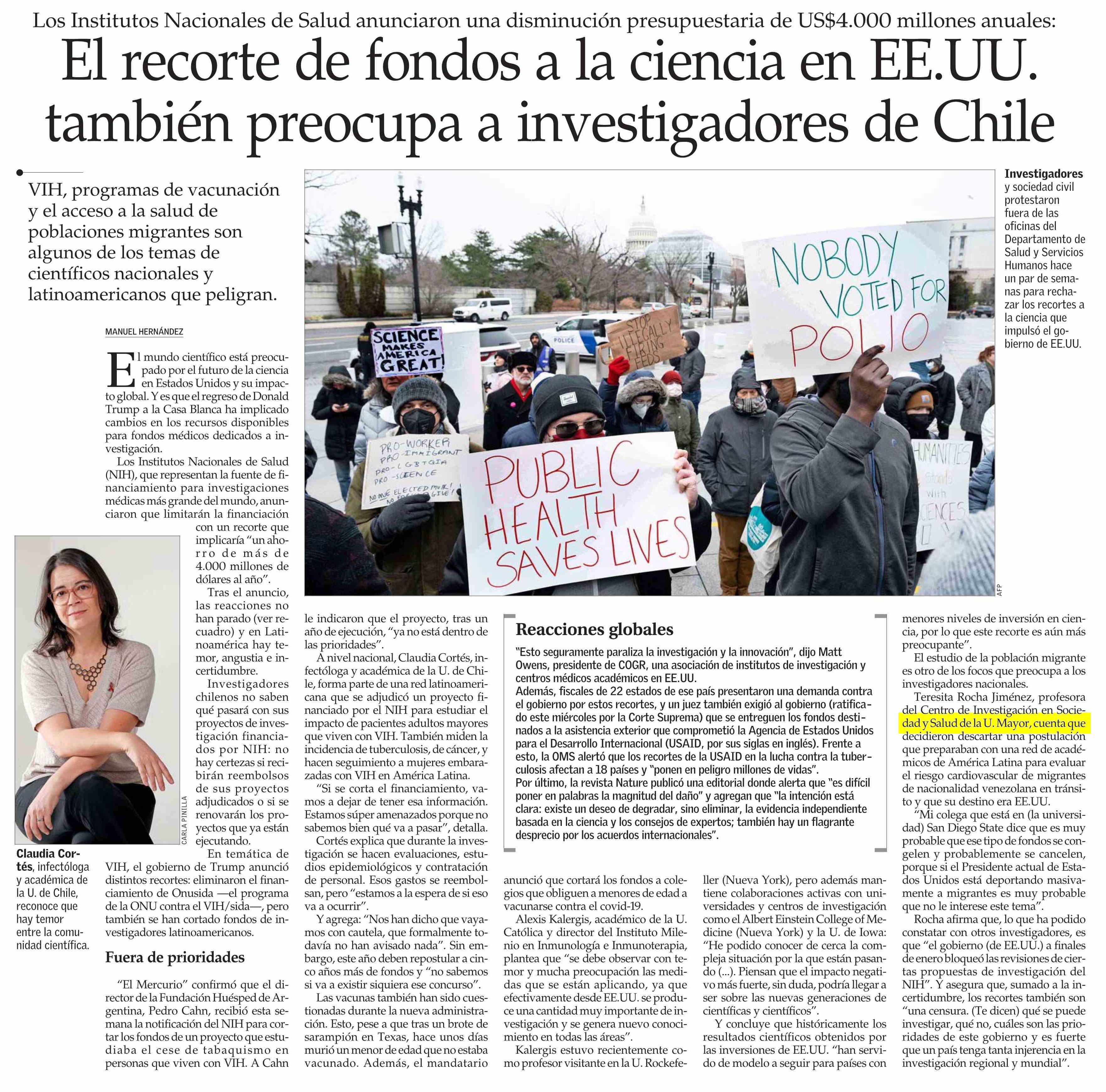 El recorte de fondos a la ciencia en EE.UU. también preocupa a investigadores de Chile 07-03-2025 El Mercurio |