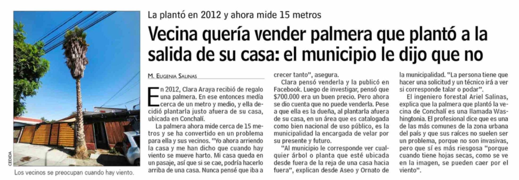 Título: Vecina quería vender palmera que plantó a la salida de su casa: el municipio le dijo que no