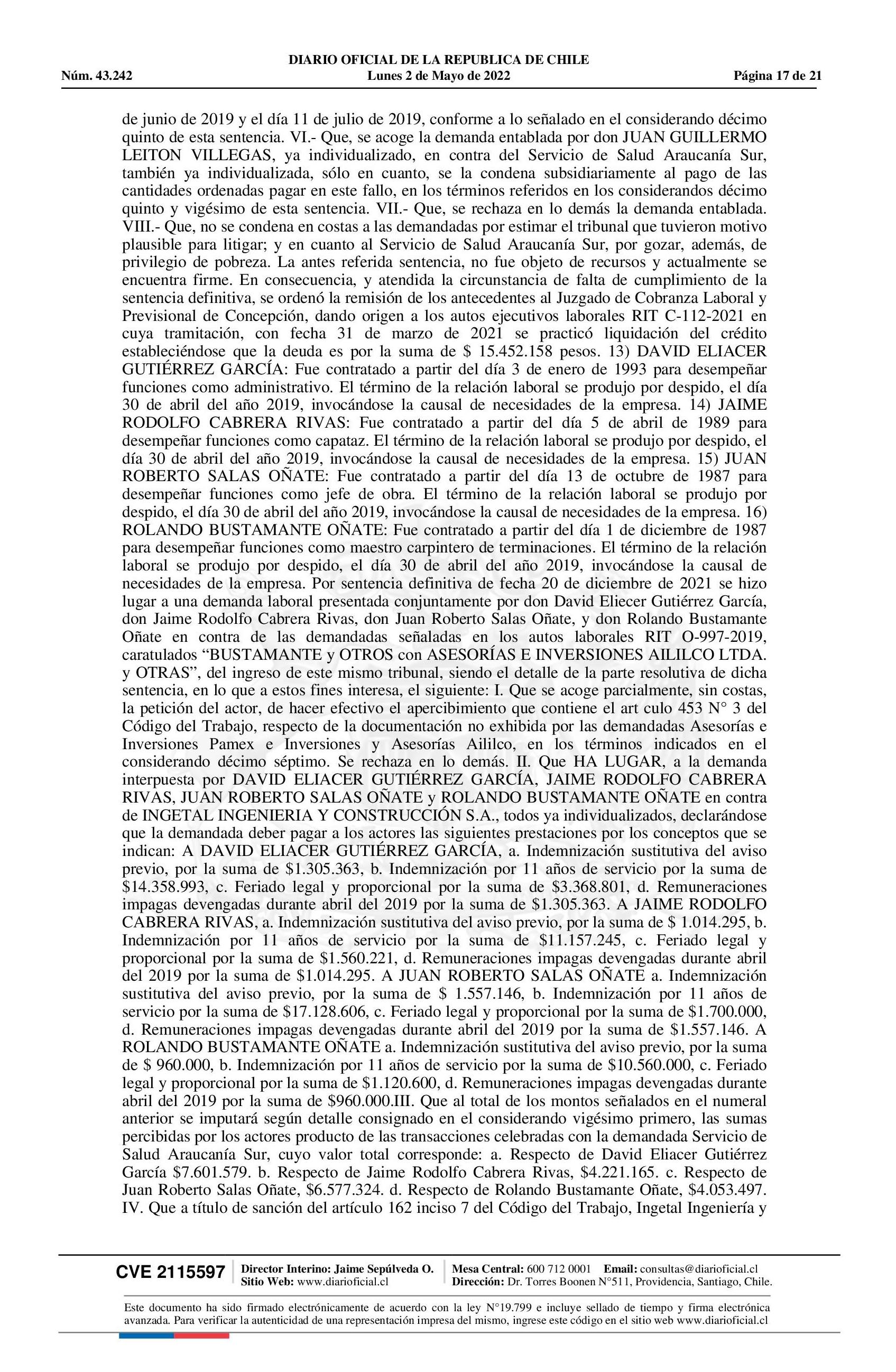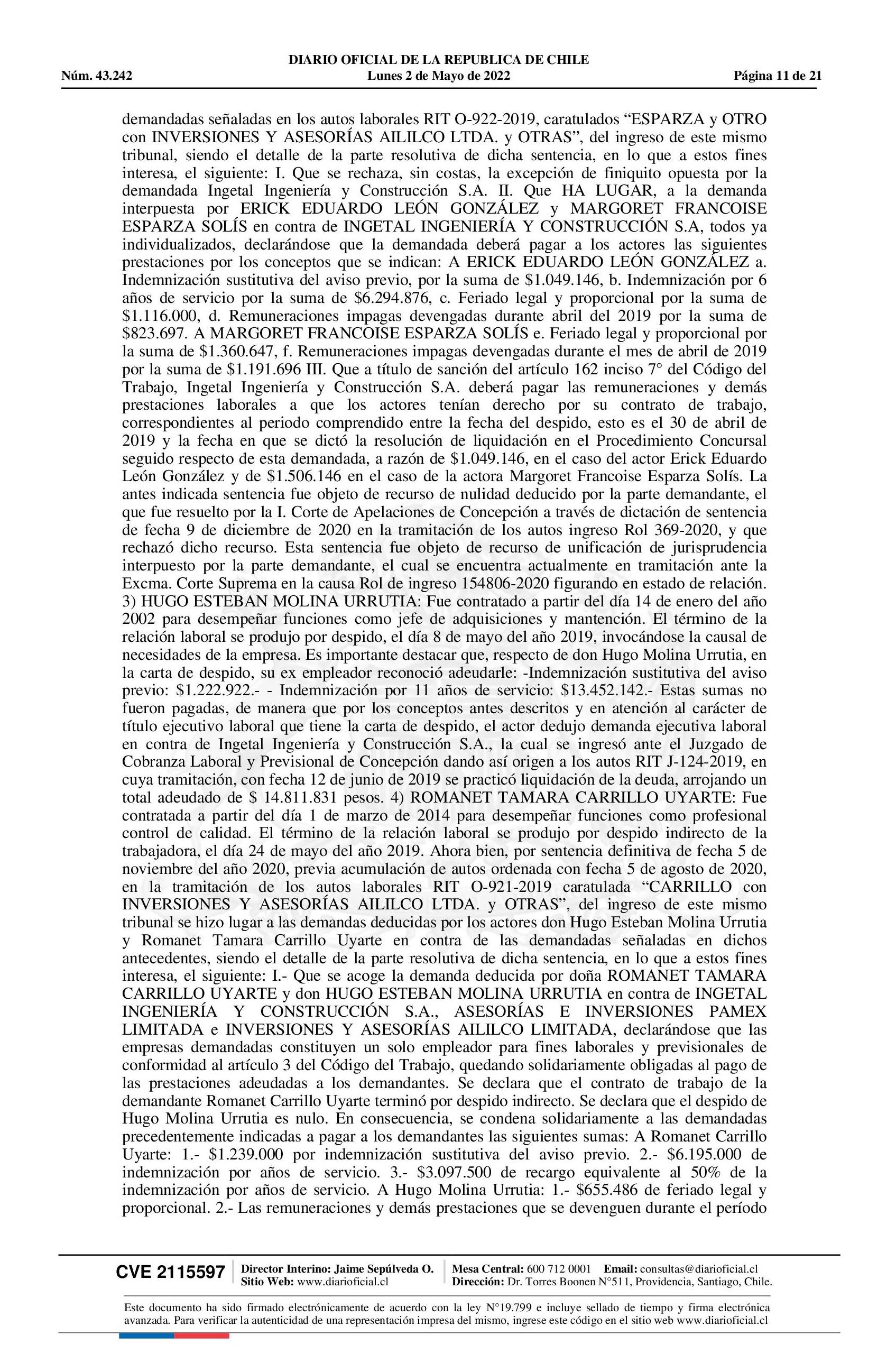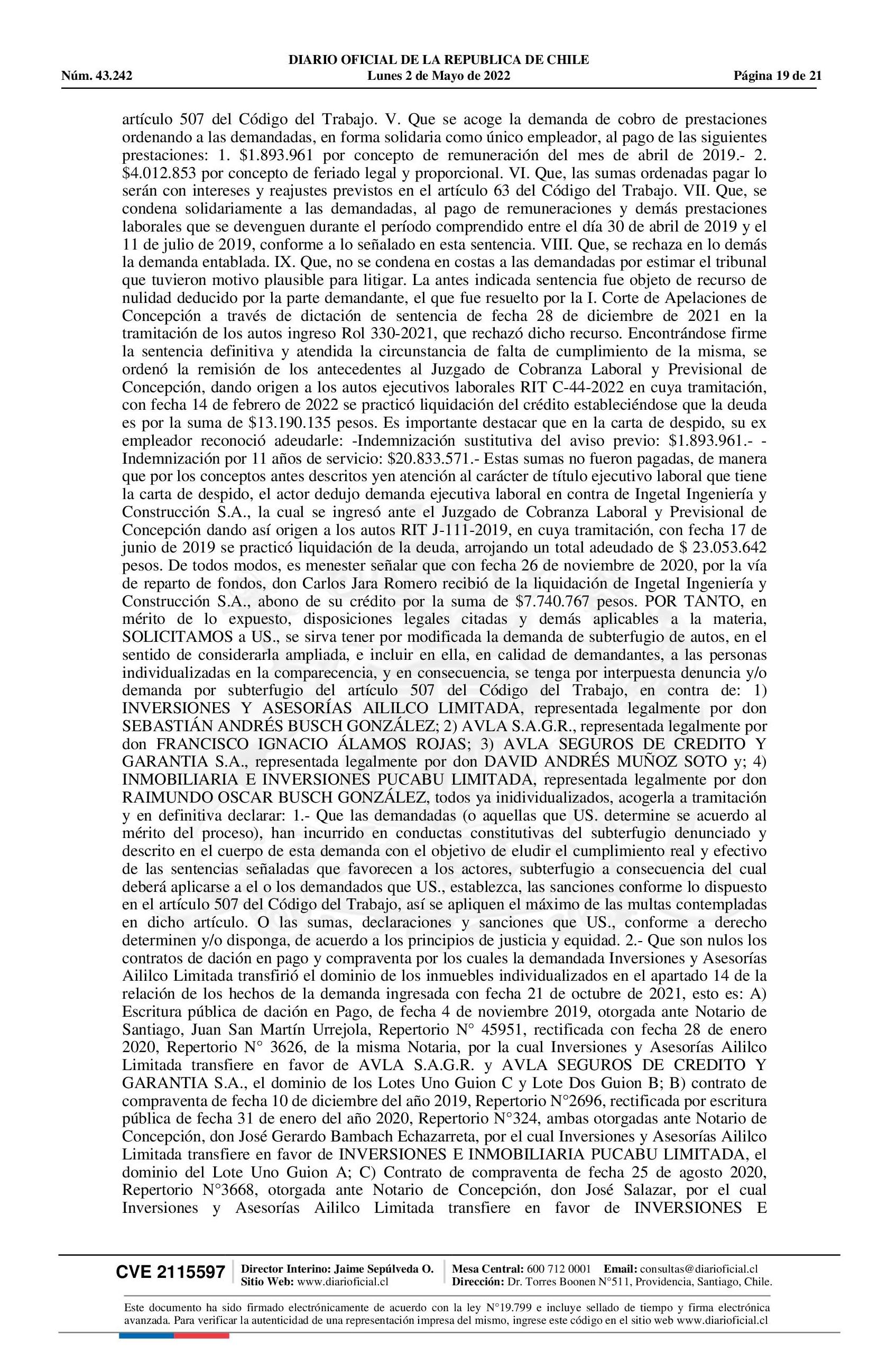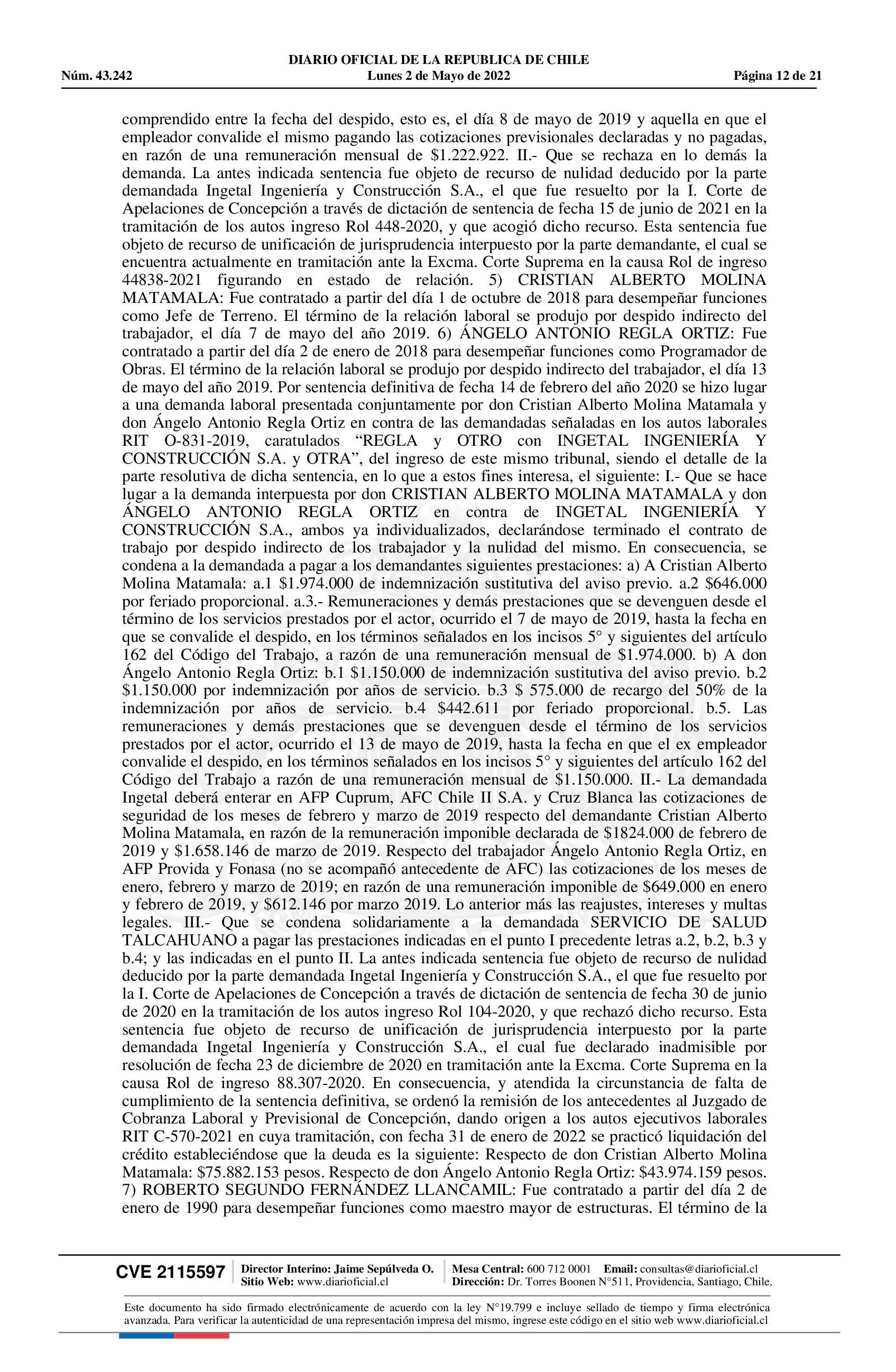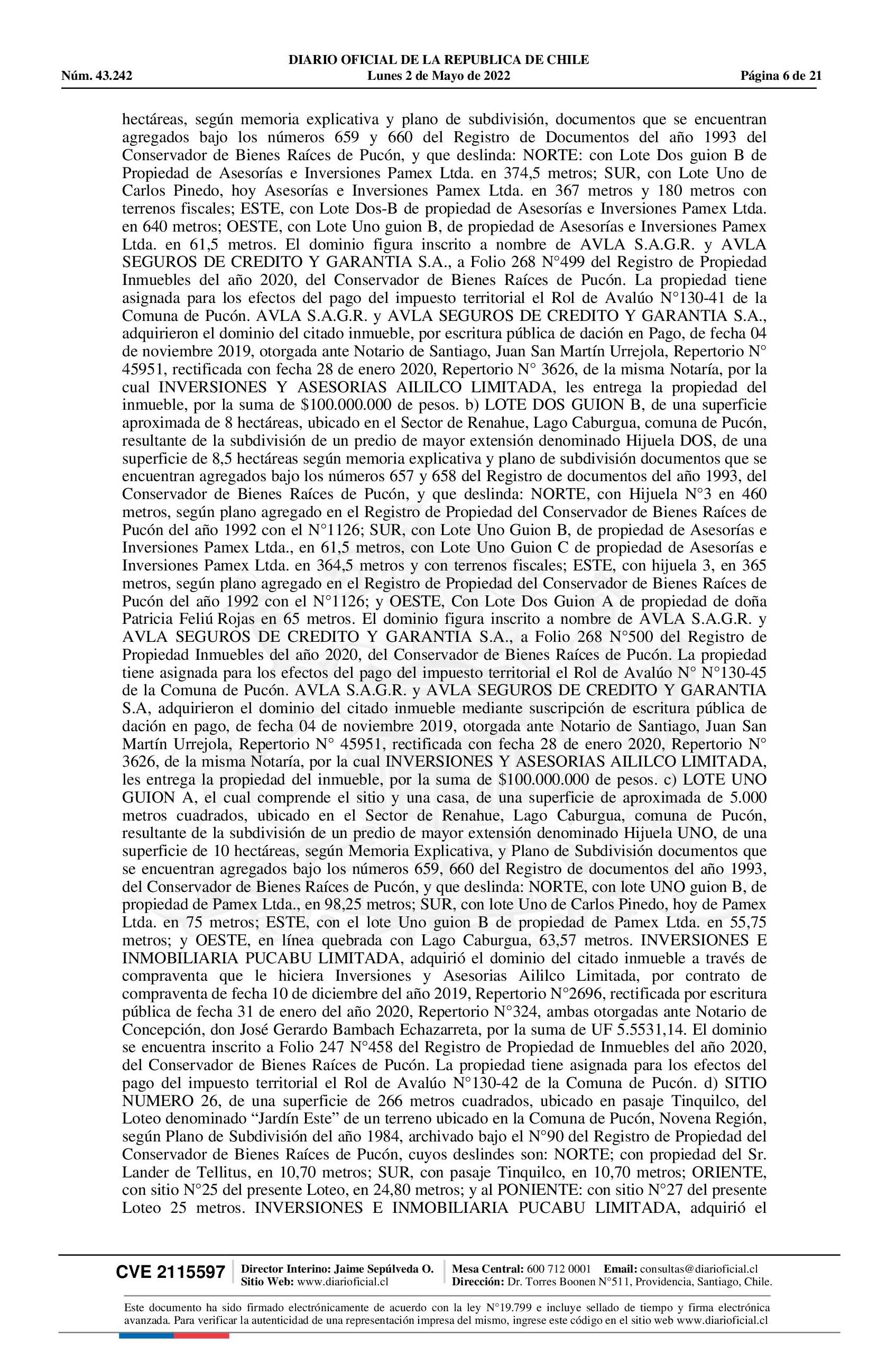 | Fuente: | Diario Oficial Edición Electrónica (Diario Oficial de Chile - 3 Public. Judiciales) | Página(s): | 968-988 |