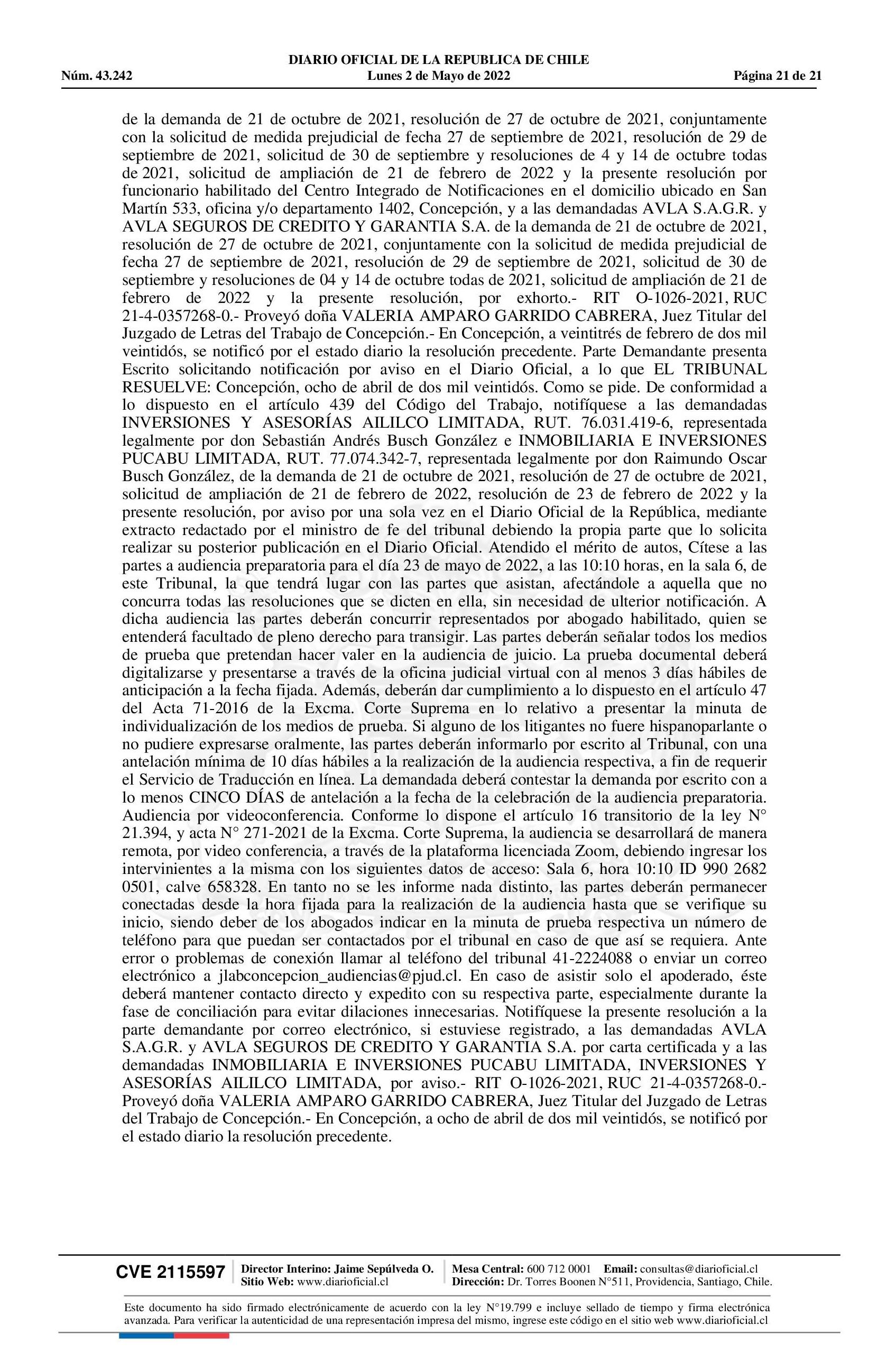 Notificación 02-05-2022 Diario Oficial Edición Electrónica |