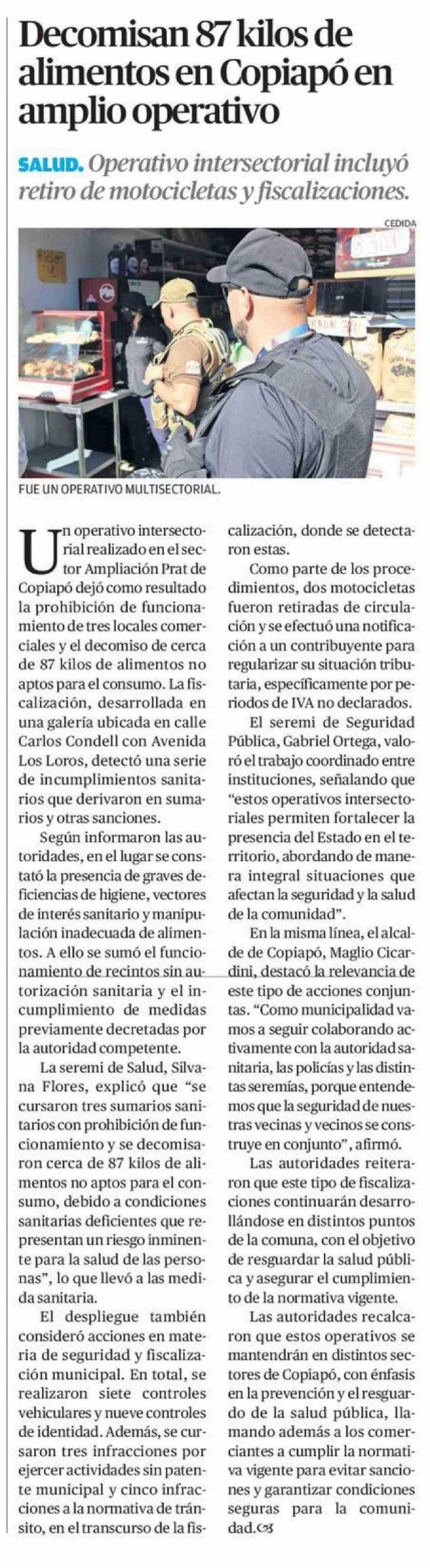 Título: Decomisan 87 kilos de alimentos en Copiapó en amplio operativo