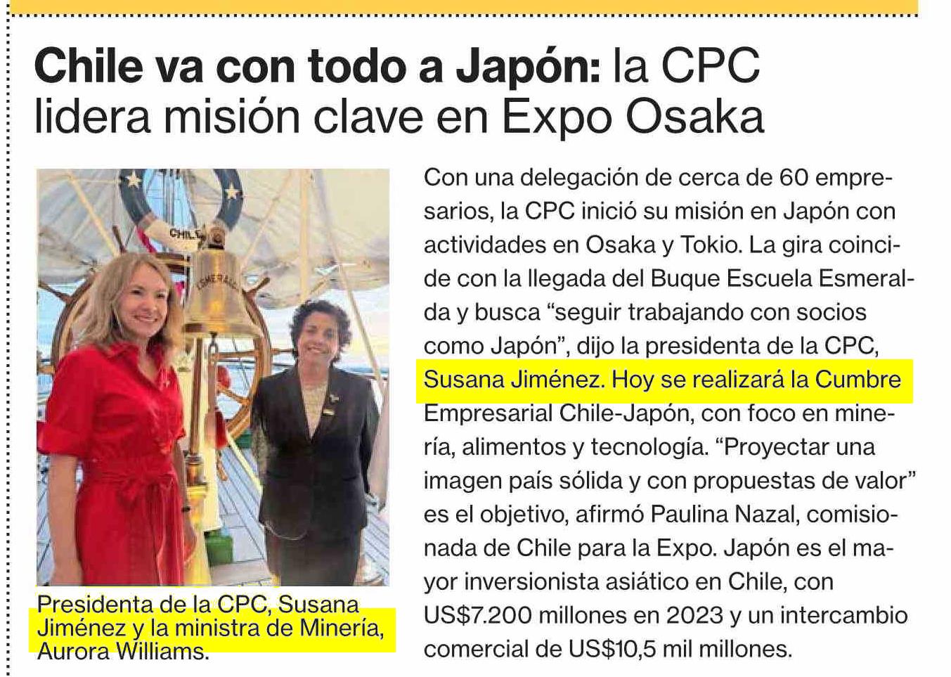 Chile va con todo a Japón: la CPC lidera misión clave en Expo Osaka 16-06-2025 La Segunda |