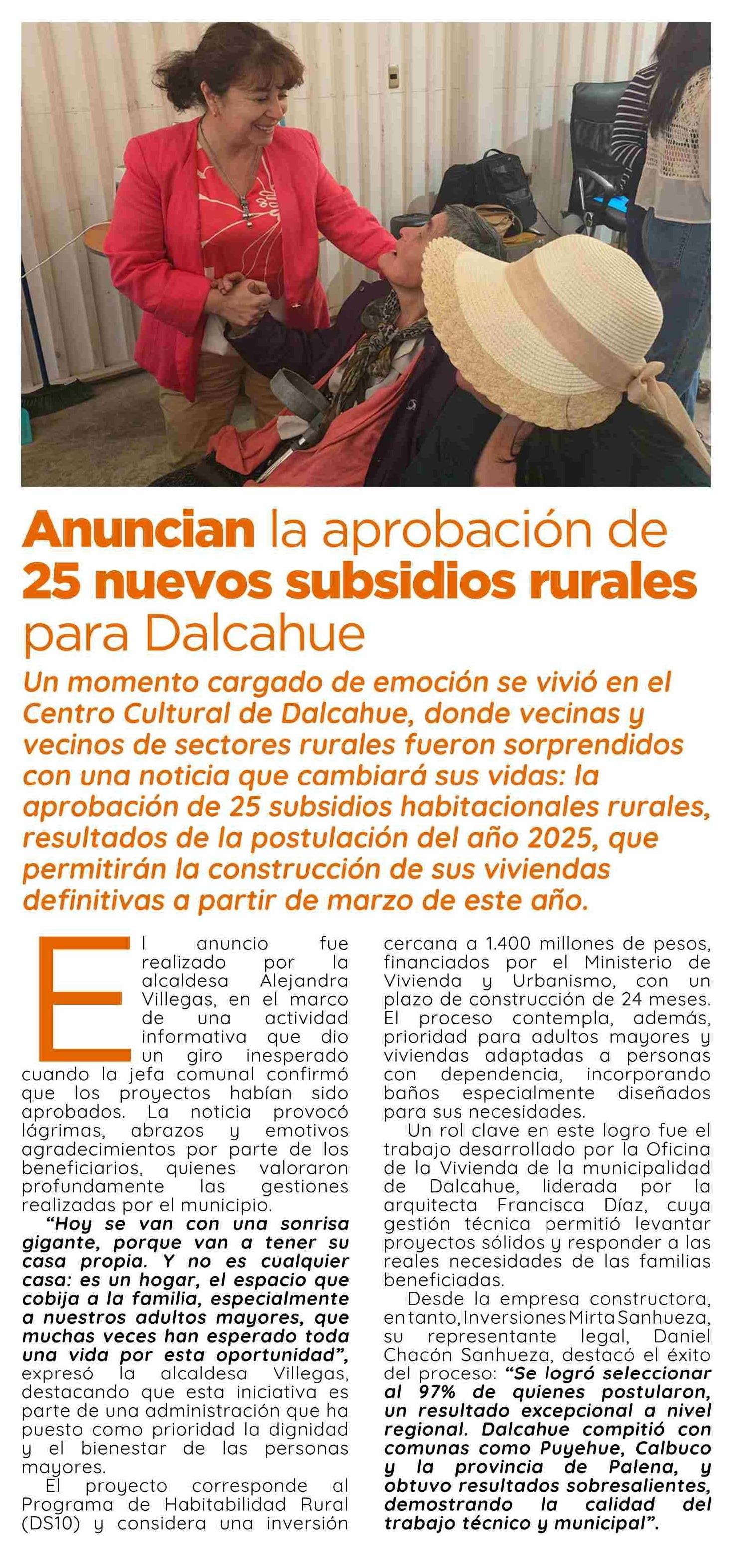 Anuncian la aprobación de 25 nuevos subsidios rurales para Dalcahue 13-01-2026 El Insular |