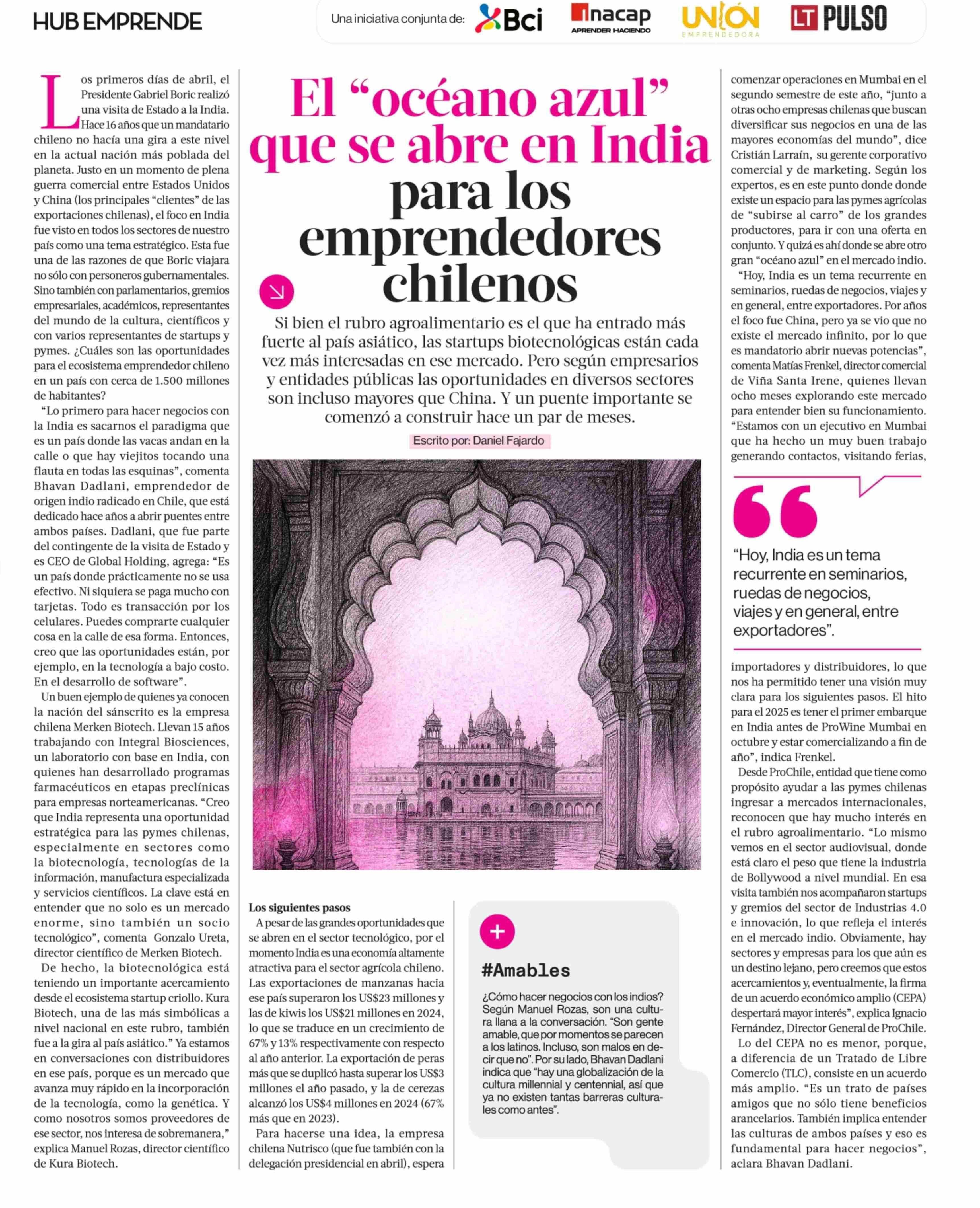 El “océano azul” que se abre en India para los emprendedores o Chilenos 25-05-2025 La Tercera |