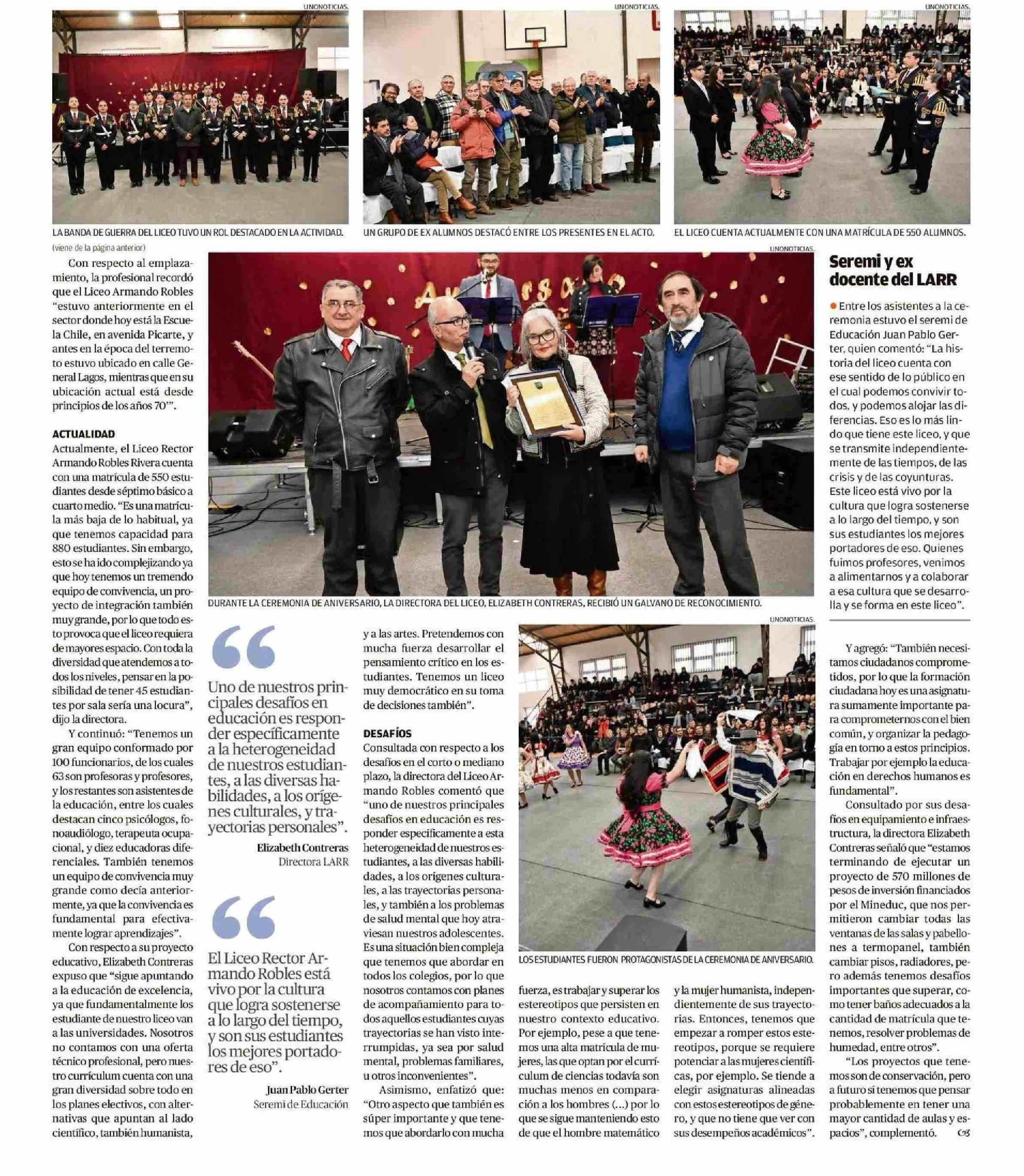 | Título: | Liceo Rector Armando Robles conmemoró sus 180 años y se traza importantes desafíos |