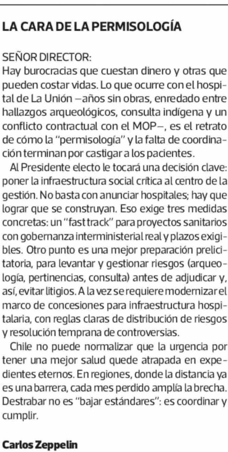 CARTAS: LA CARA DE LA PERMISOLOGÍA 21-01-2026 La Tercera |