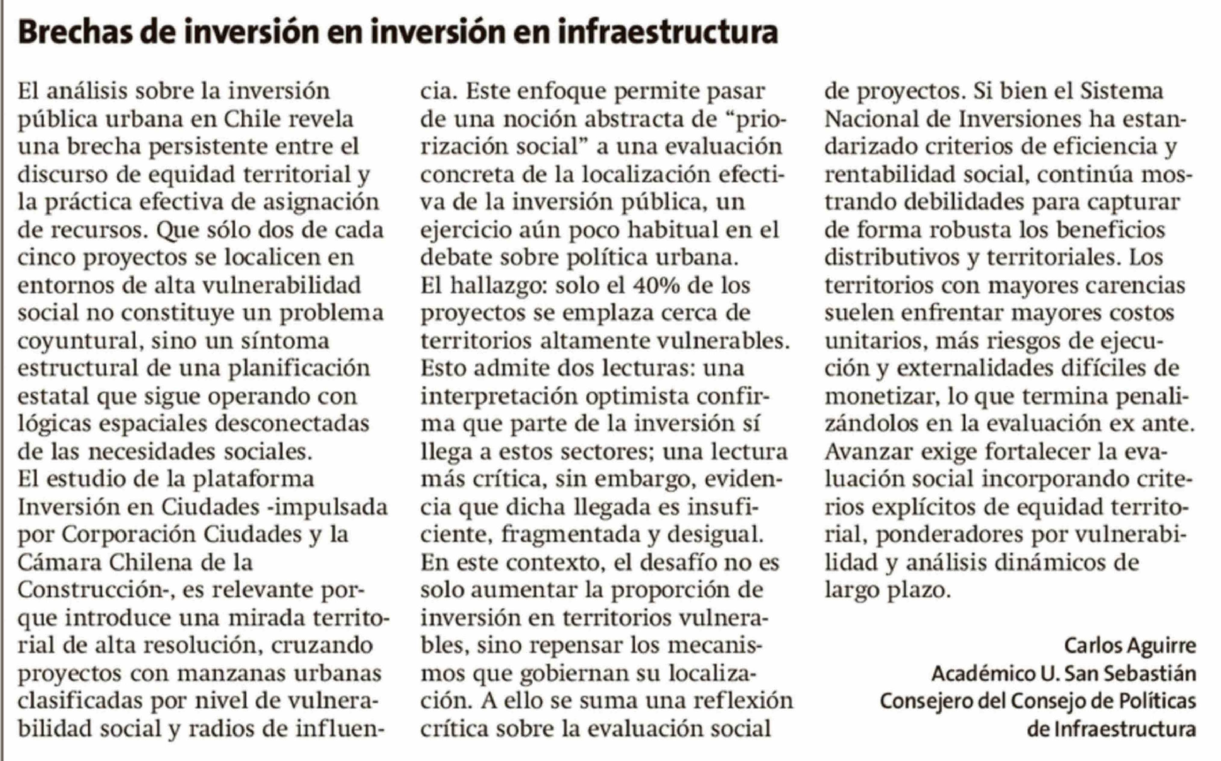 Cartas: Brechas de inversión en inversión en infraestructura 11-02-2026 La Estrella de Valparaíso |