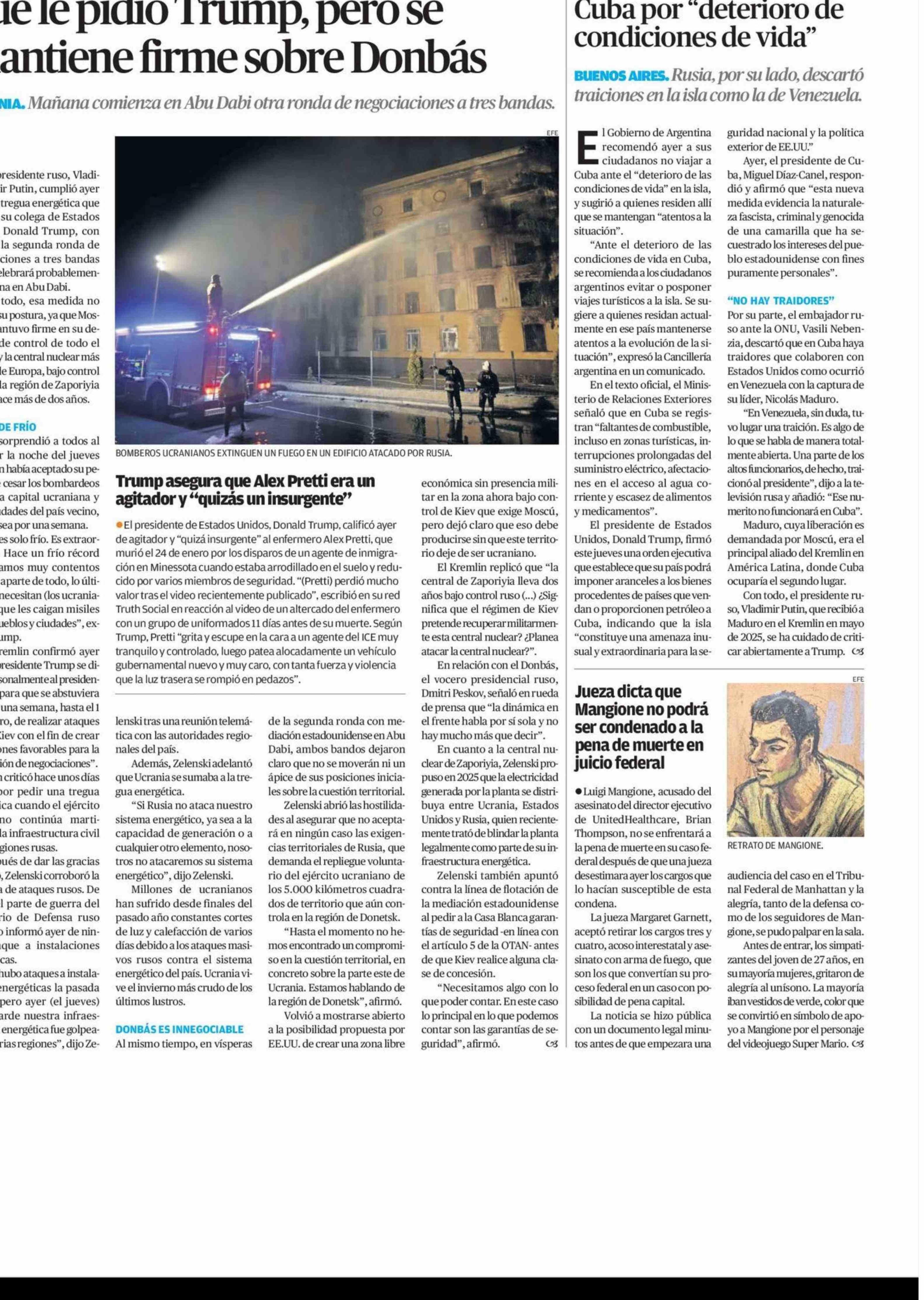 Putin cumple la tregua energética que le pidió Trump, pero se mantiene firme sobre Donbás 31-01-2026 El Diario de Atacama |