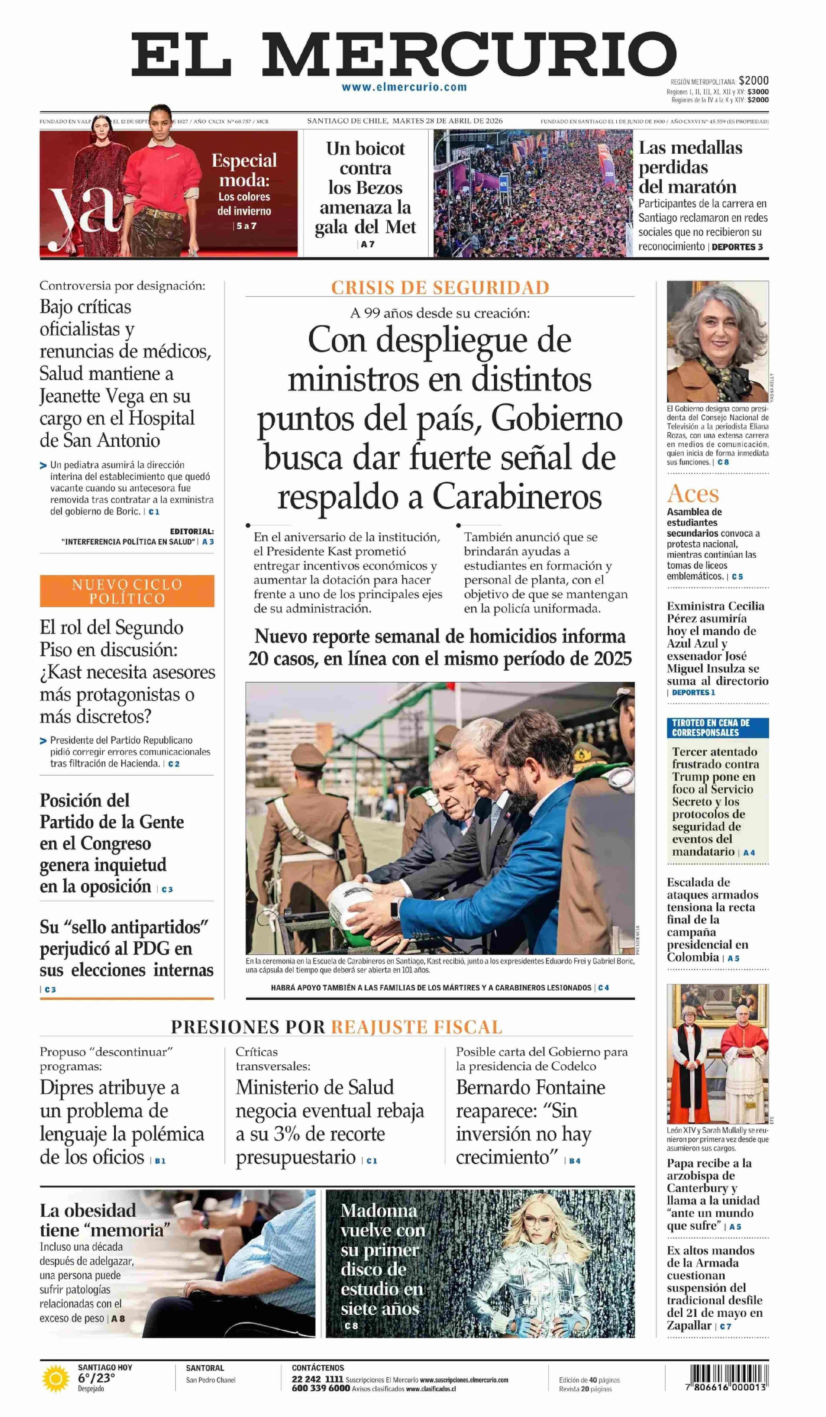 PORTADA EL MERCURIO (A) - CHILE 28-04-2026 El Mercurio |