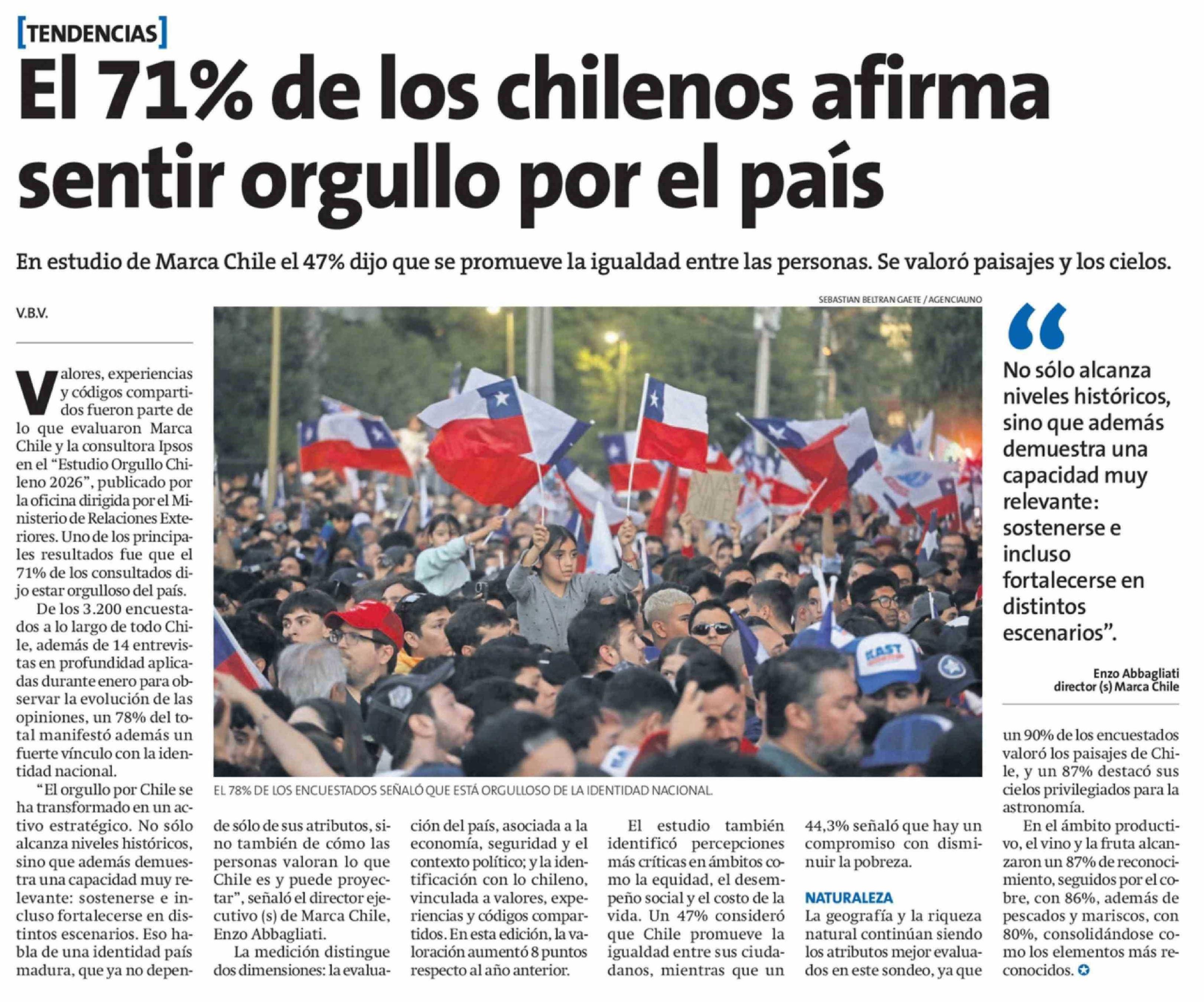 Título: El 71% de los chilenos afirma sentir orgullo por el país
