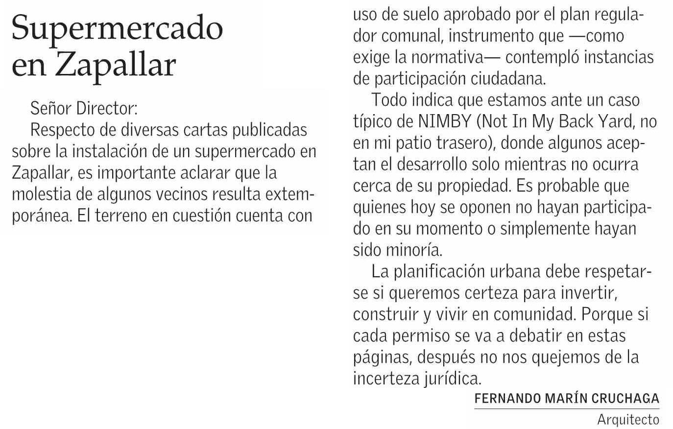 CARTAS: Supermercado en Zapallar 16-06-2025 El Mercurio |