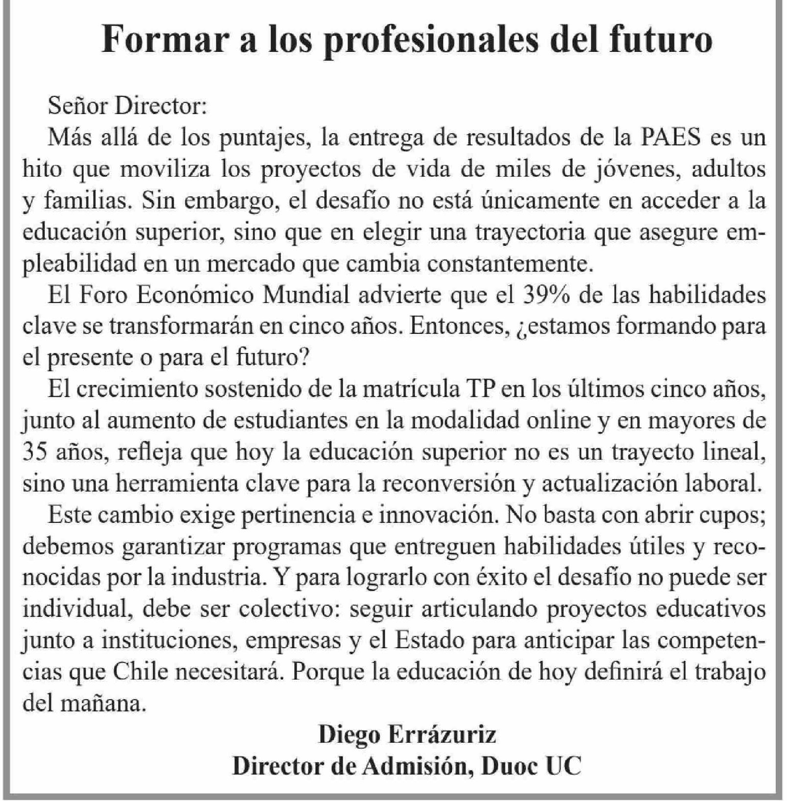 Columnas de Opinión: Formar a los profesionales del futuro 09-01-2026 El Heraldo |