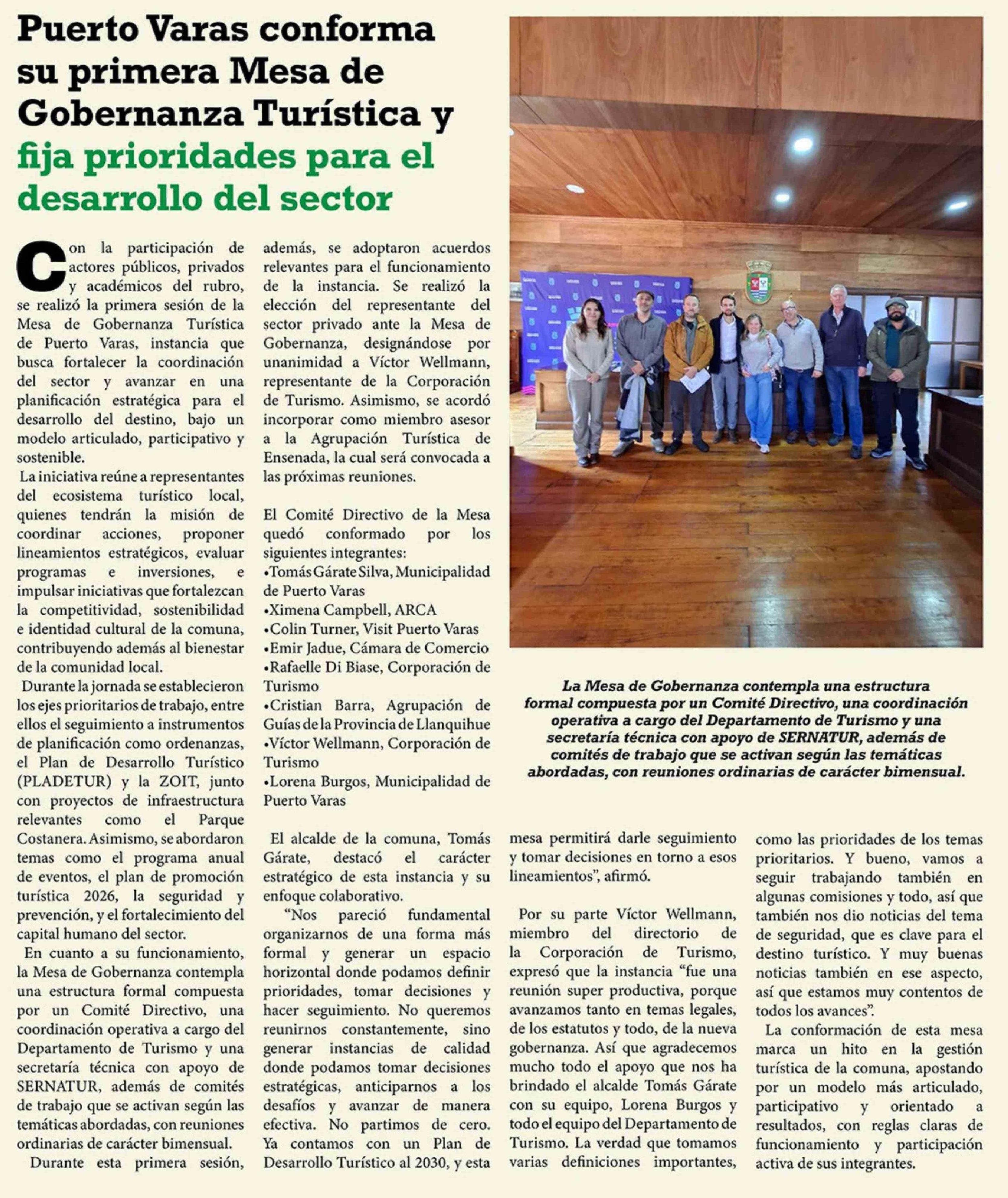 Puerto Varas conforma su primera Mesa de Gobernanza Turística y fija prioridades para el desarrollo del sector 26-03-2026 El Heraldo Austral |