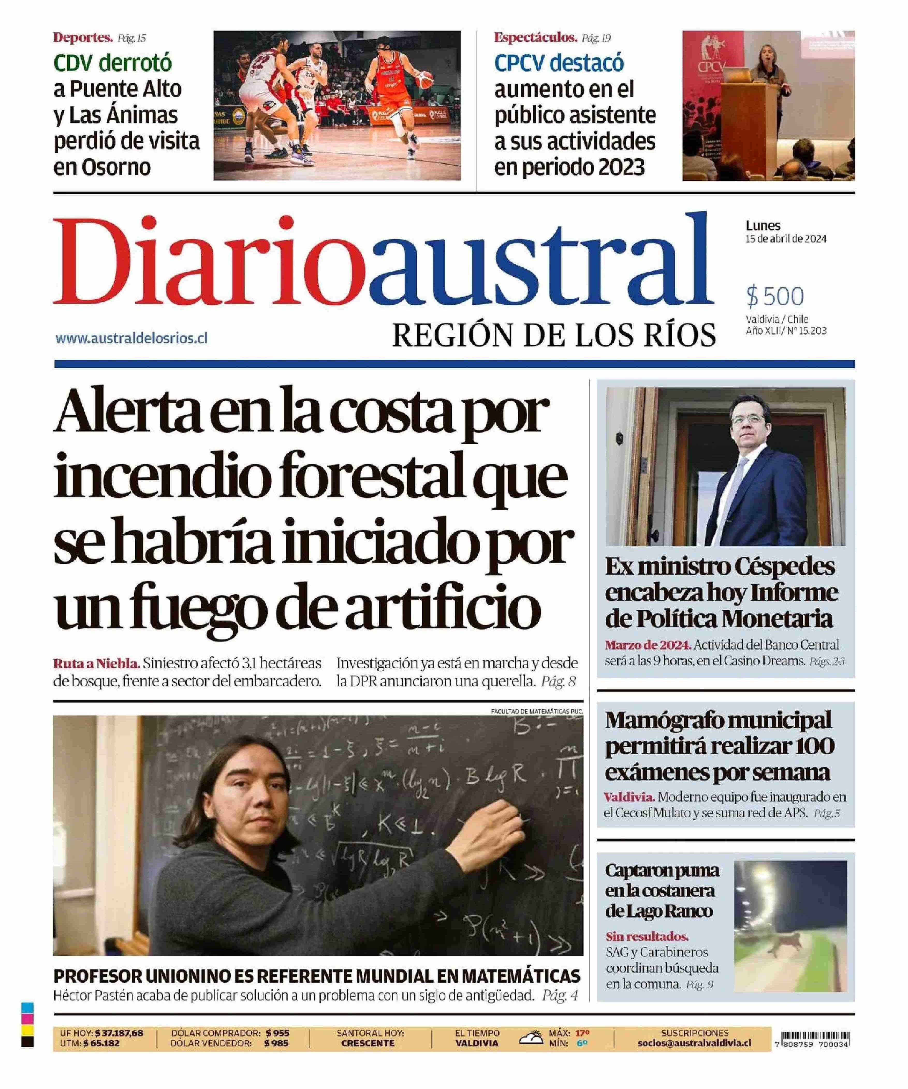 | Fecha: | 15-04-2024 | Sector: | Portada | Región: | Región de Los Ríos |