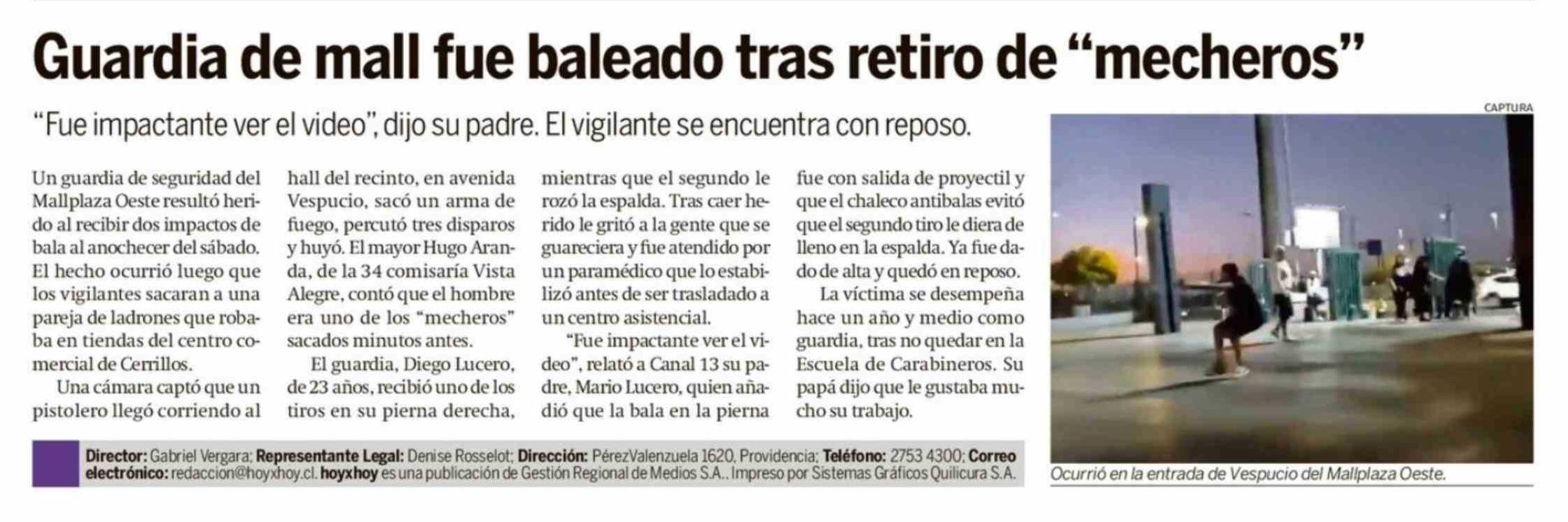 | Título: | Guardia de mall fue baleado tras retiro de "mecheros" |