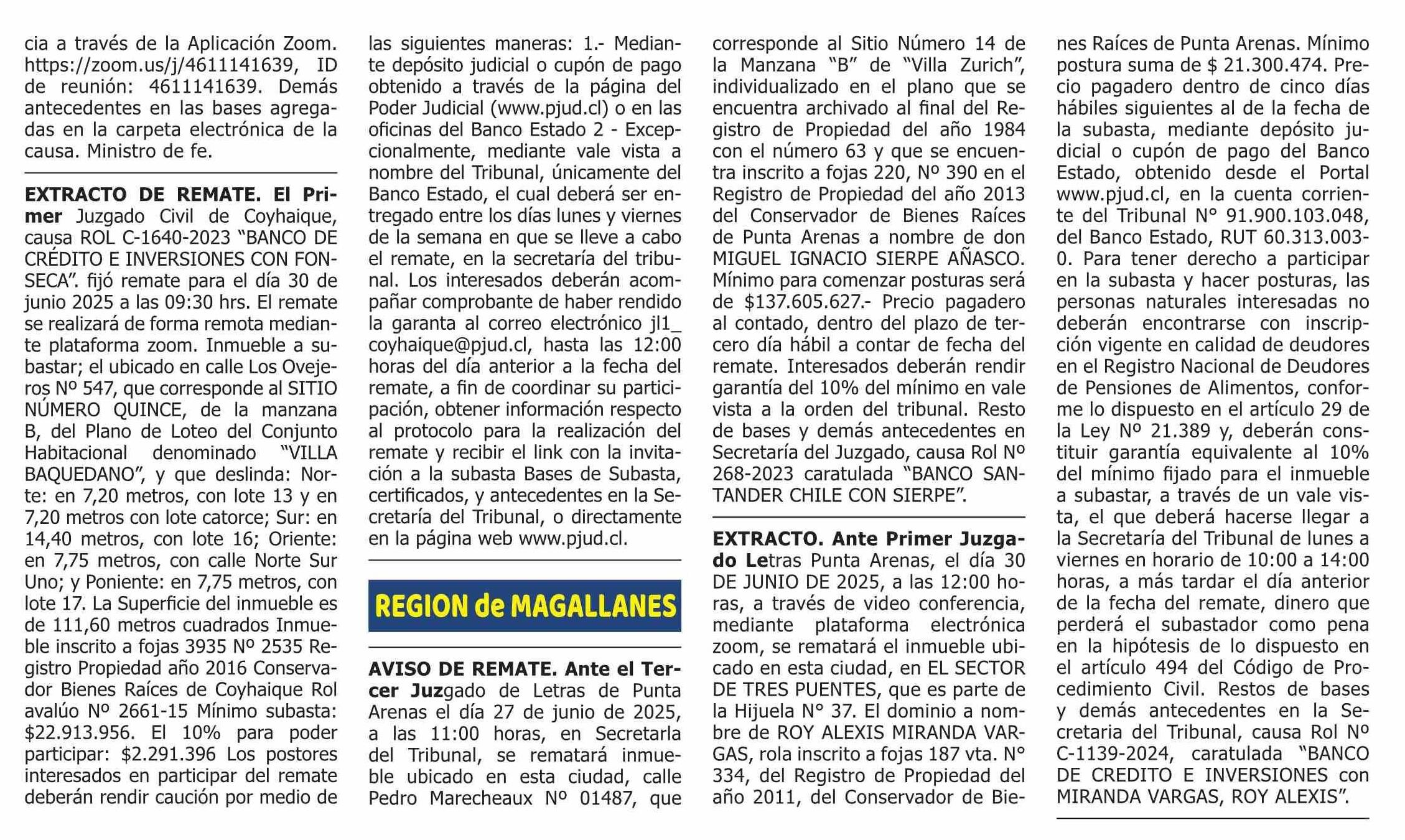 | Fecha: | 23-06-2025 | Sector: | Remates | Región: | Región Metropolitana de Santiago |