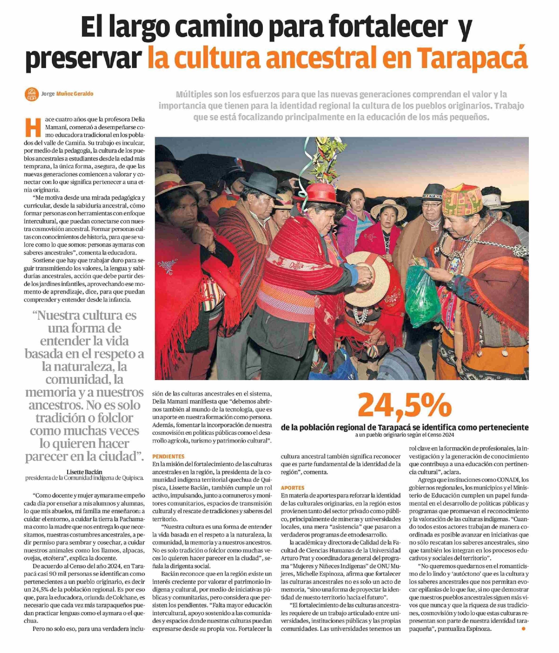 El largo camino para fortalecer y preservar la cultura ancestral en Tarapacá 15-03-2026 La Estrella de Iquique |