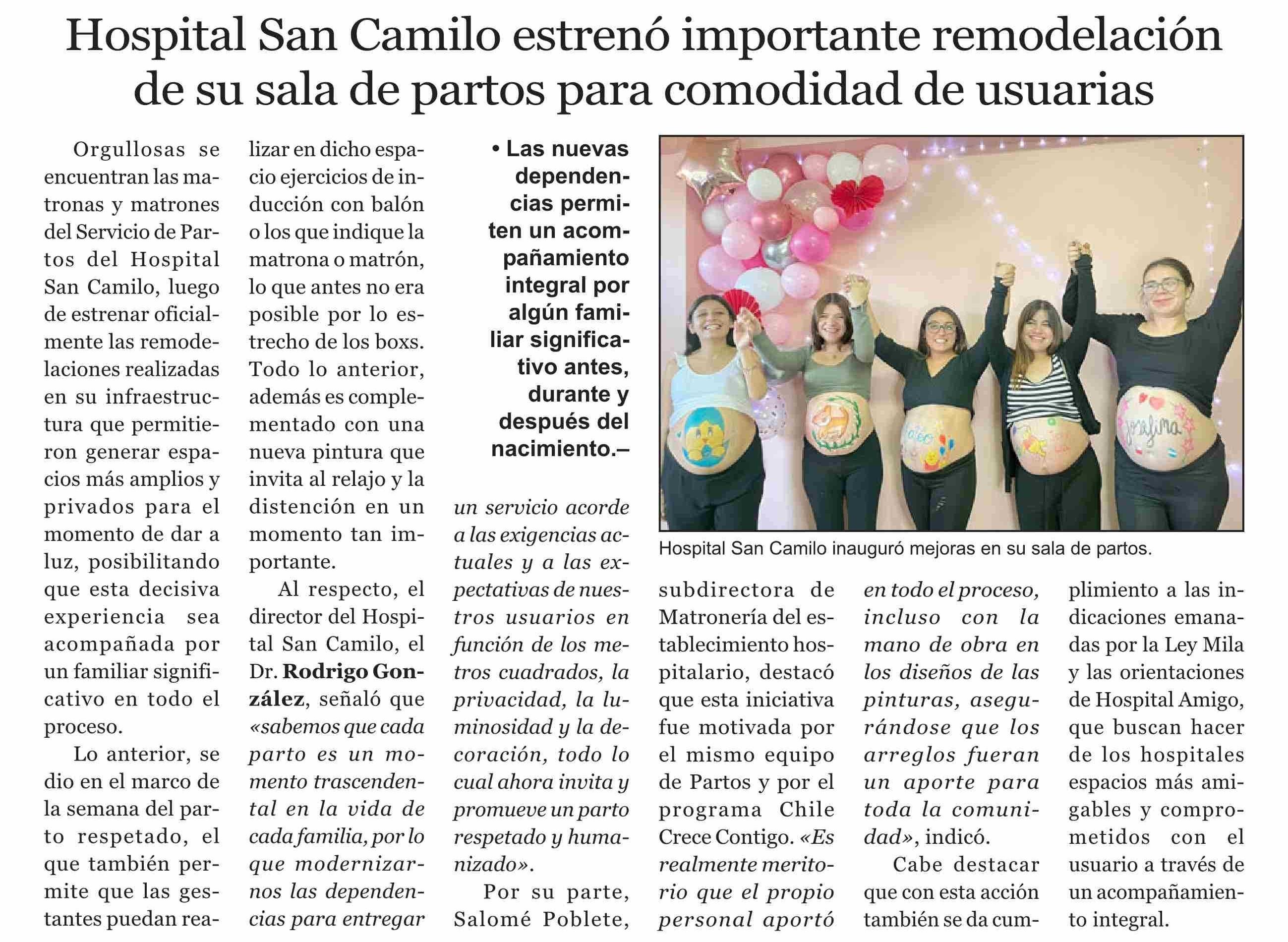 Hospital San Camilo estrenó importante remodelación de su sala de partos para comodidad de usuarias 20-05-2025 El Trabajo |
