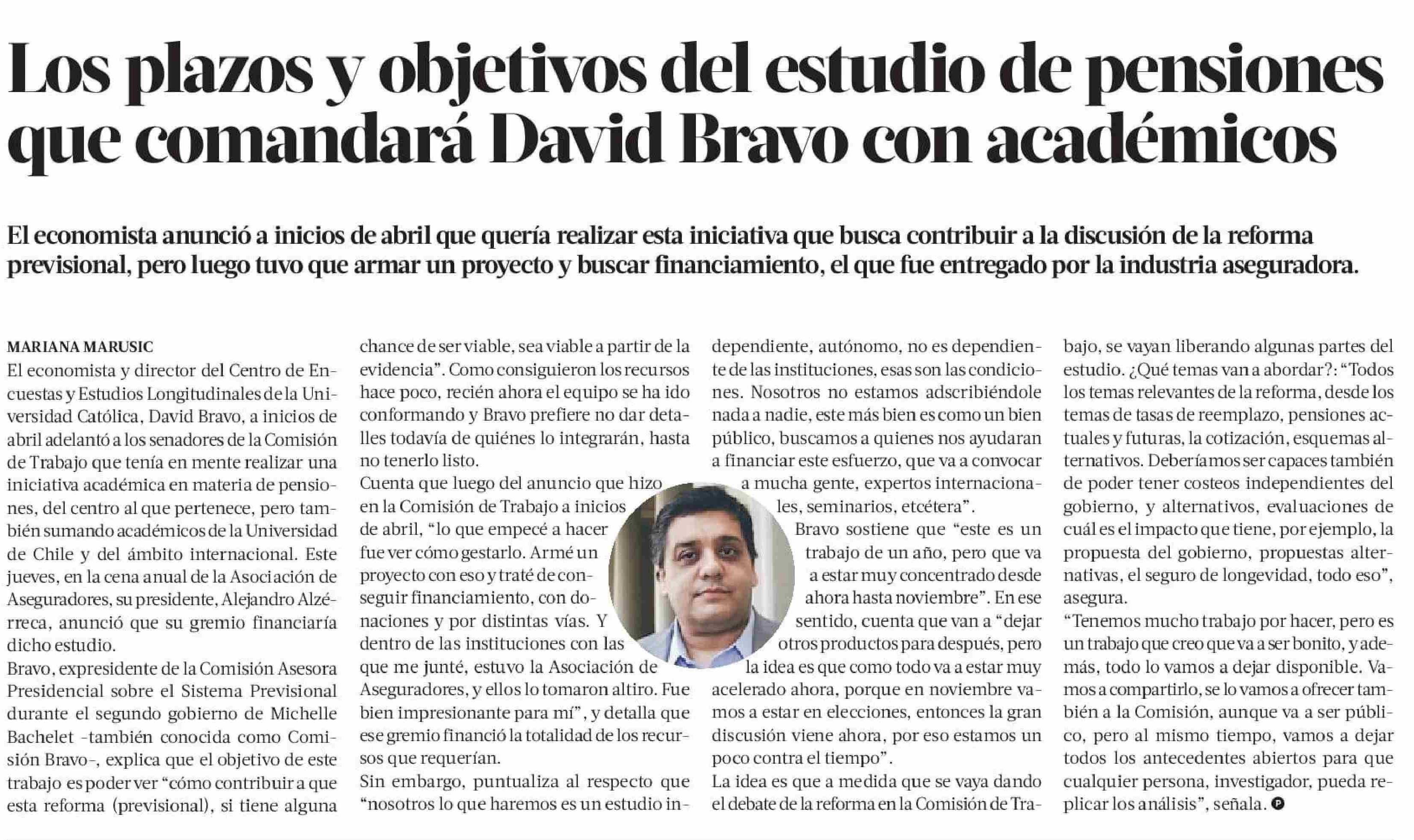 Los plazos y objetivos del estudio de pensiones que comandará David Bravo con académicos 25-05-2024 La Tercera |