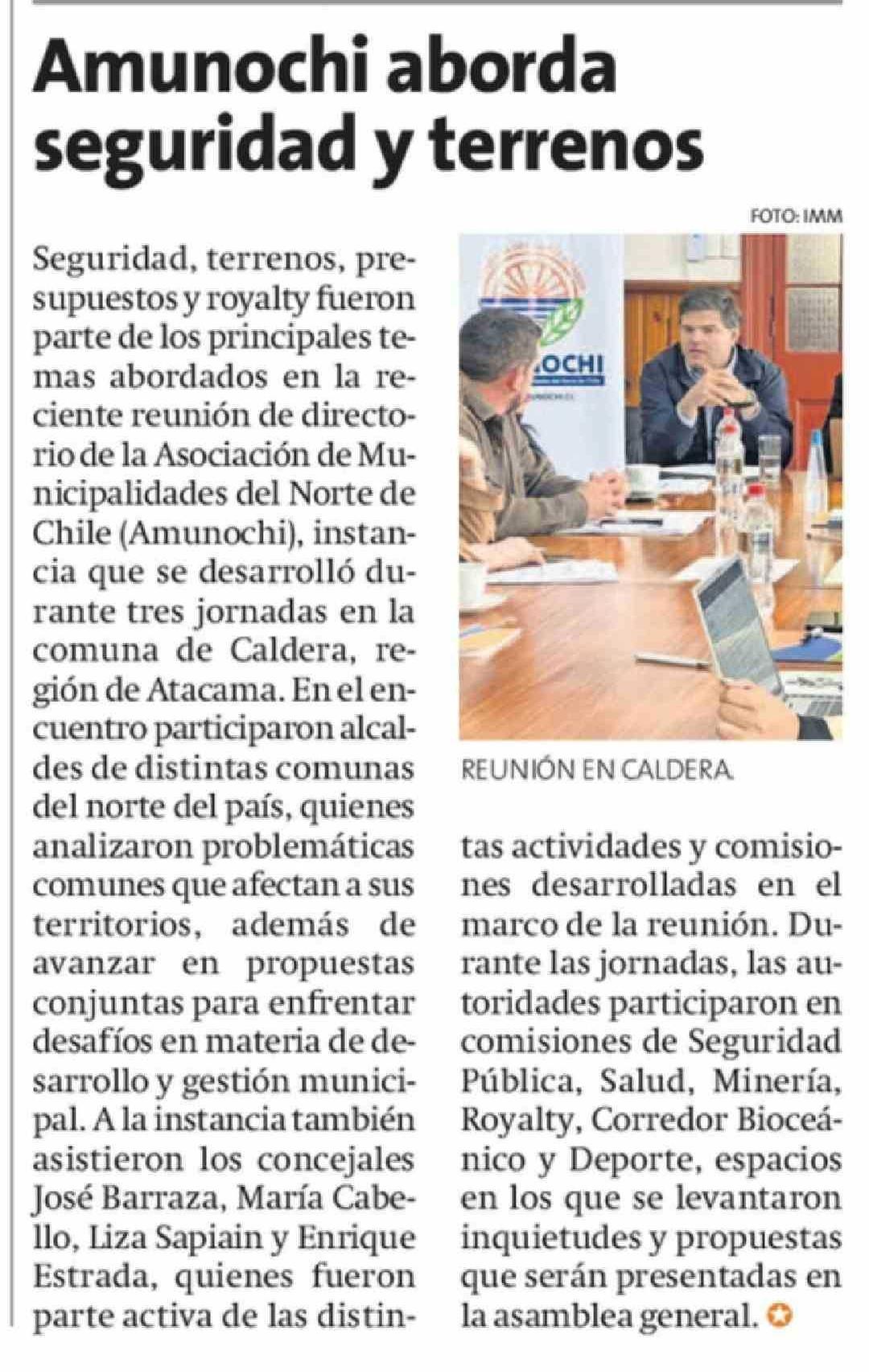 Amunochi aborda seguridad y terrenos 10-04-2026 La Estrella de Antofagasta |