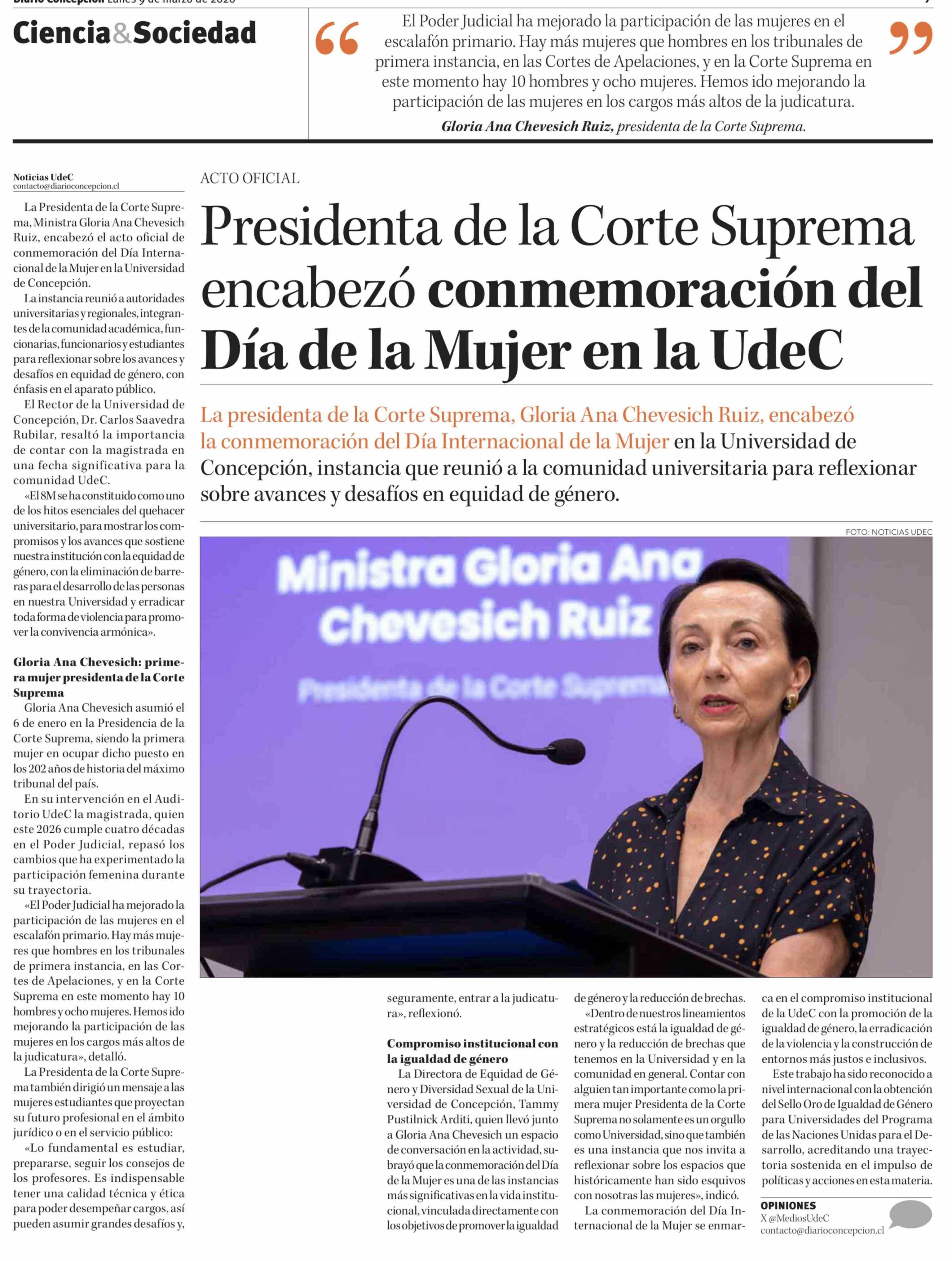 Título: Presidenta de la Corte Suprema encabezó conmemoración del Día de la Mujer en la UdeC