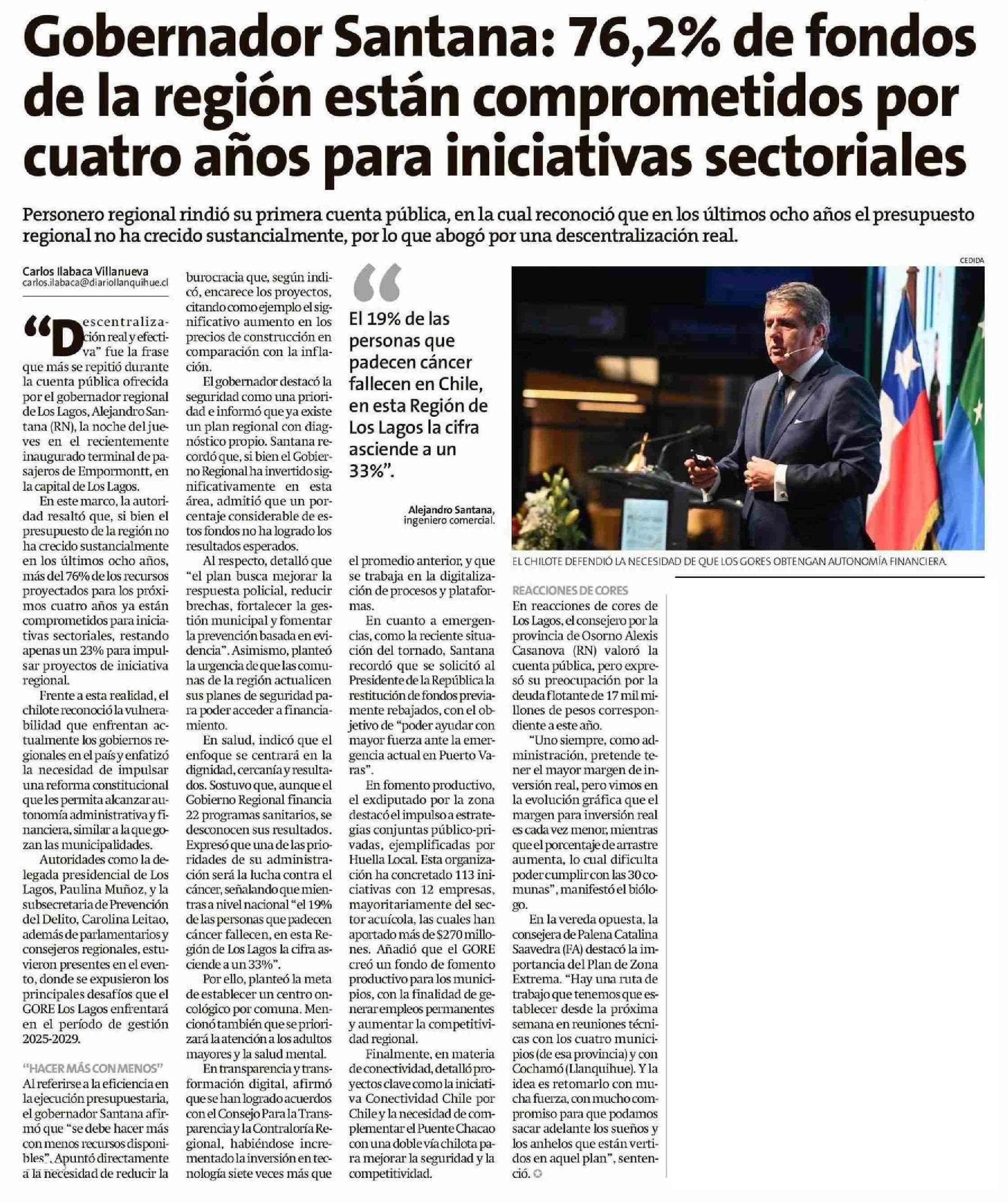 Gobernador Santana: 76,2% de fondos de la región están comprometidos por cuatro años para iniciativas sectoriales 31-05-2025 La Estrella de Chiloé |