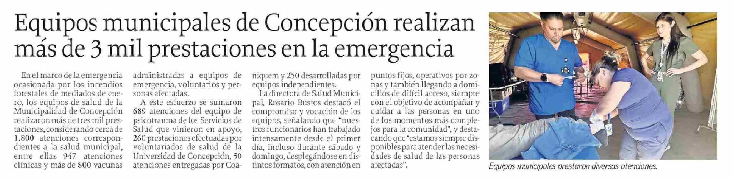 Equipos municipales de Concepción realizan más de 3 mil prestaciones en la emergencia 07-02-2026 El Sur |