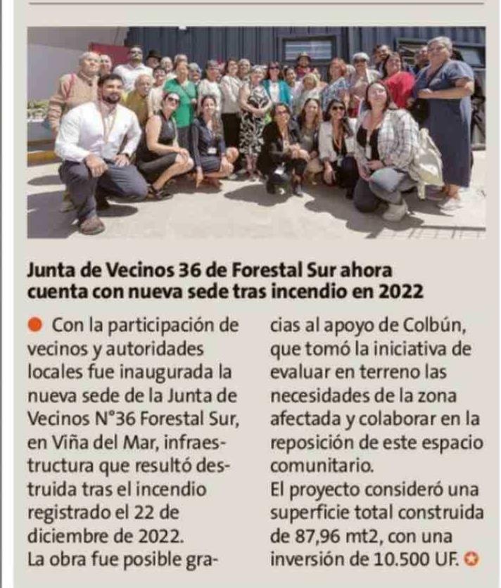 Título: Junta de Vecinos 36 de Forestal Sur ahora cuenta con nueva sede tras incendio en 2022