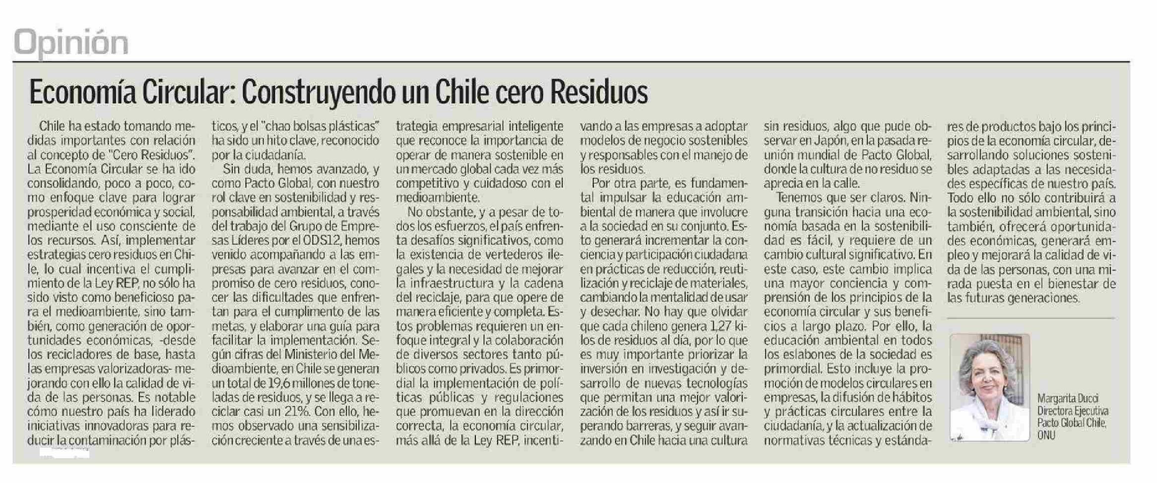 Título: COLUMNAS DE OPINIÓN: Economía Circular: Construyendo un Chile cero Residuos